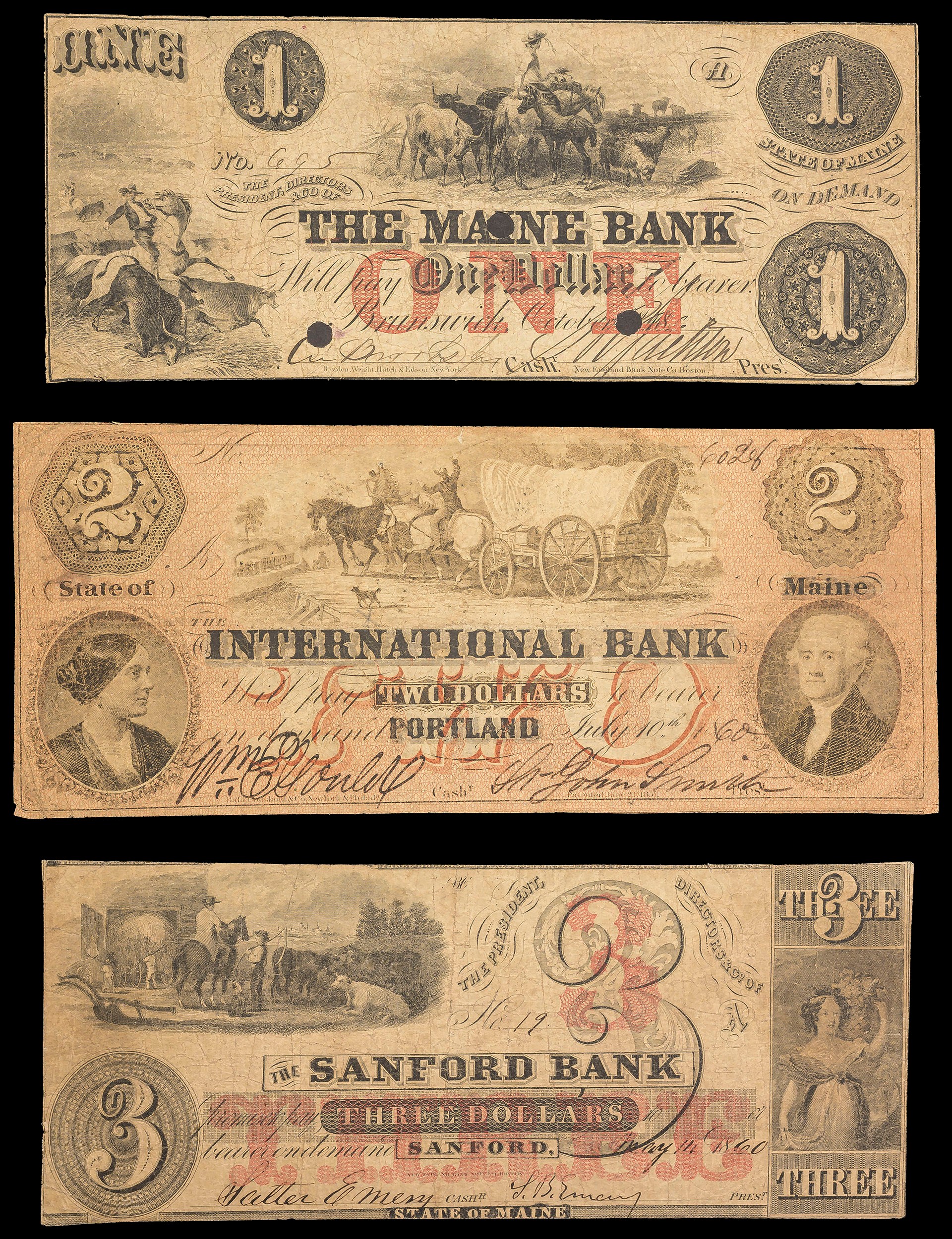 Maine. 3 Different Obsolete Notes