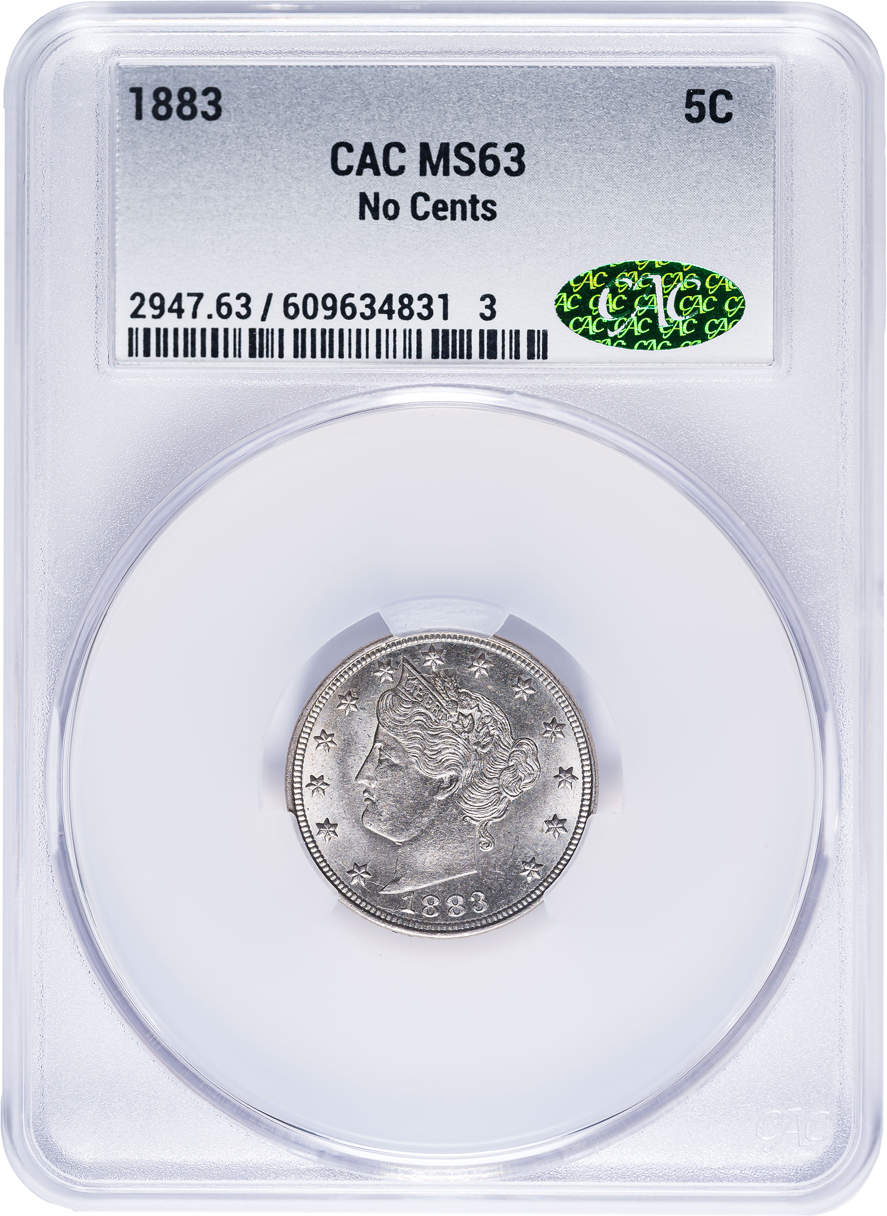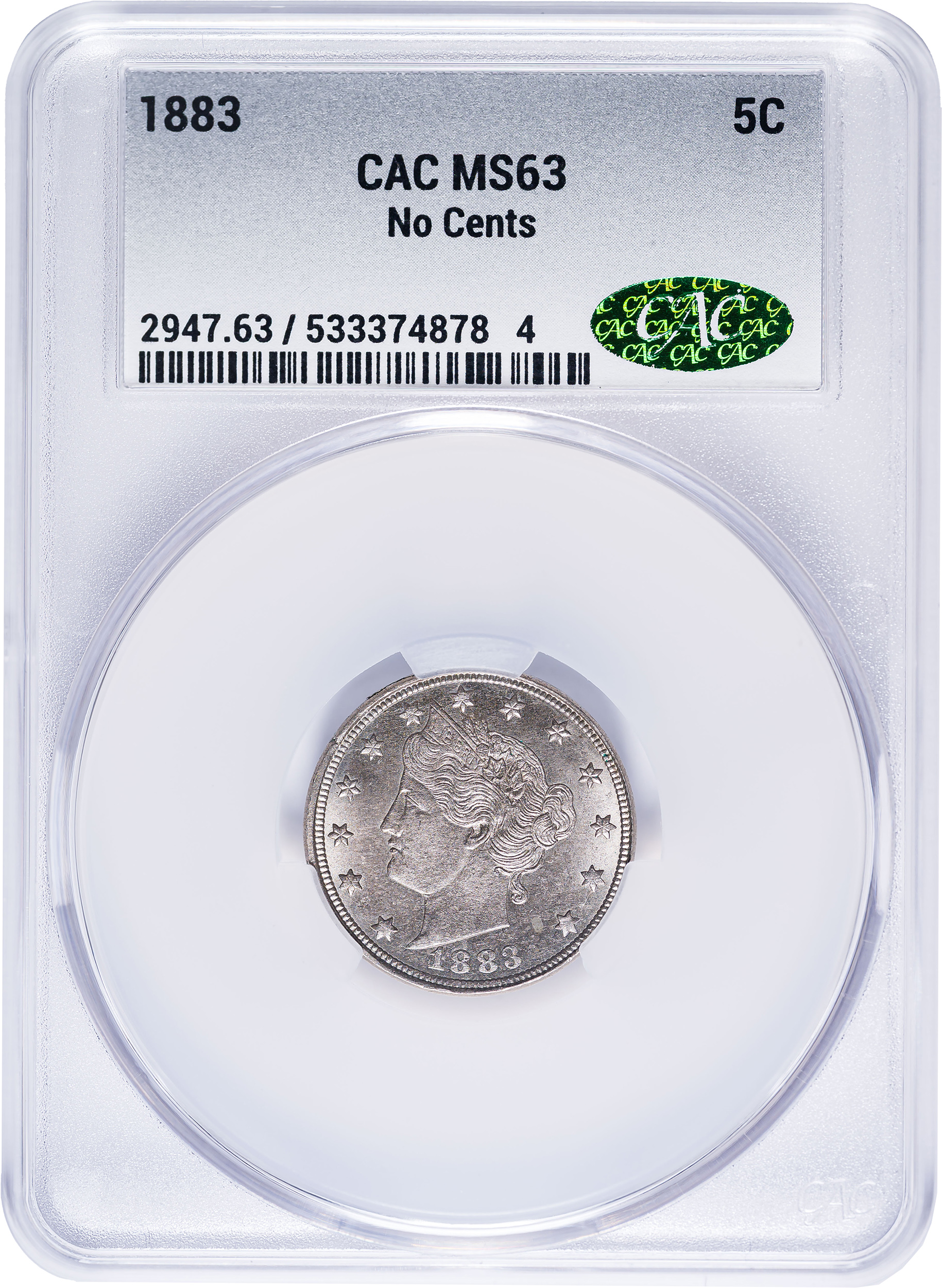 CACG MS-63 1883 No Cents Liberty Nickel