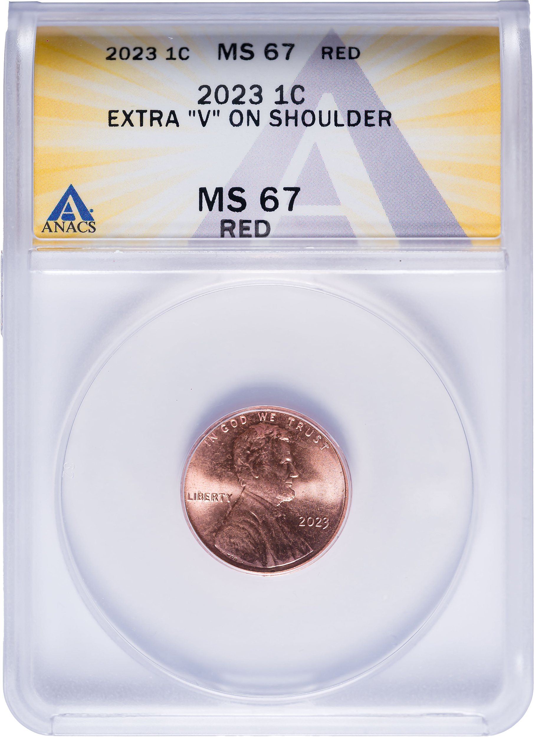ANACS MS-67 RD 2023 Extra V Lincon Cent