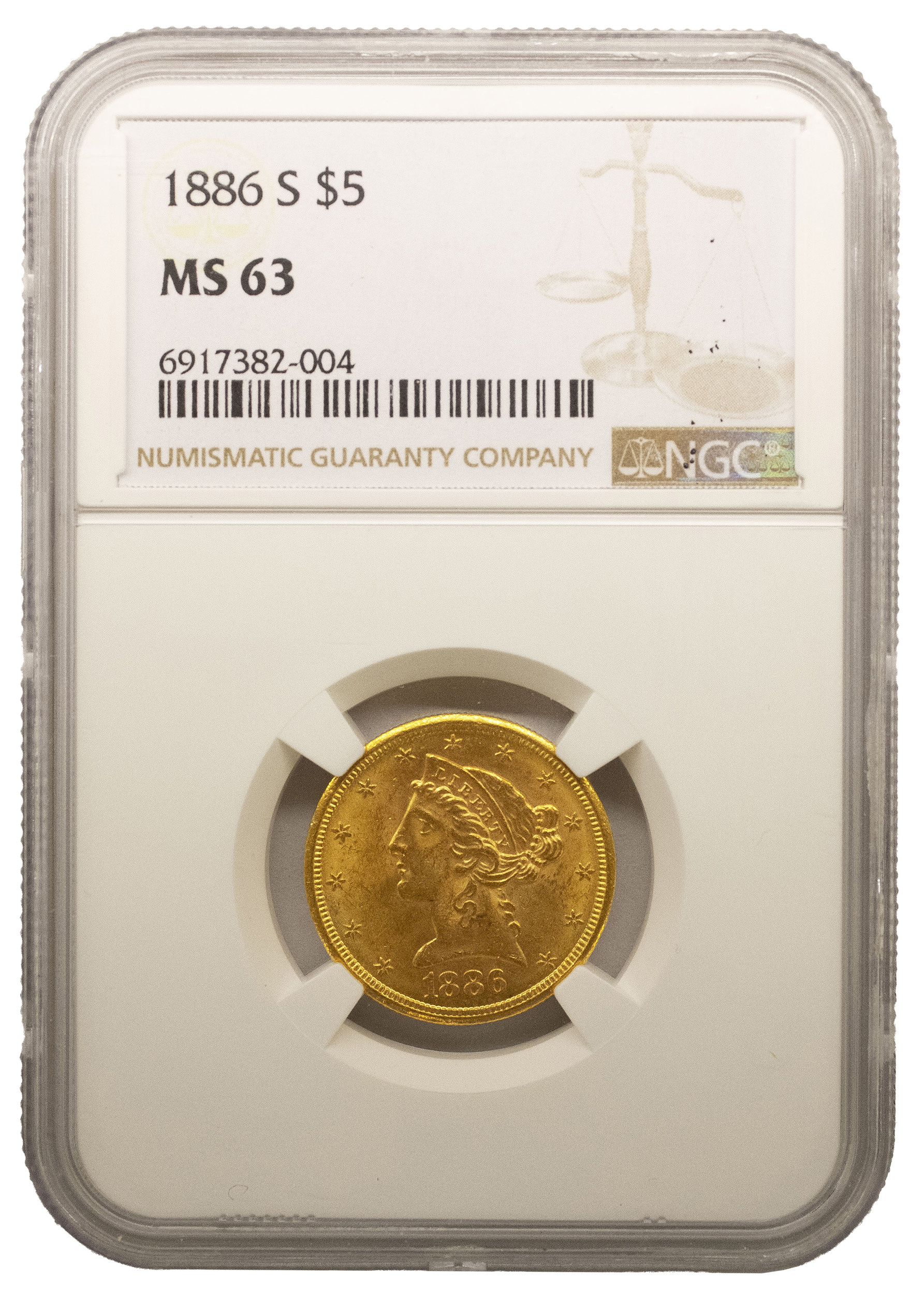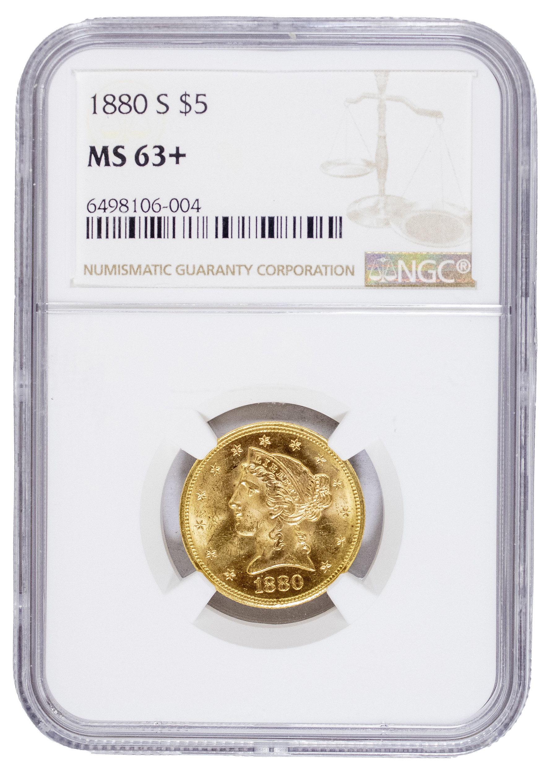 NGC MS-63+ 1880-S Gold $5 Liberty