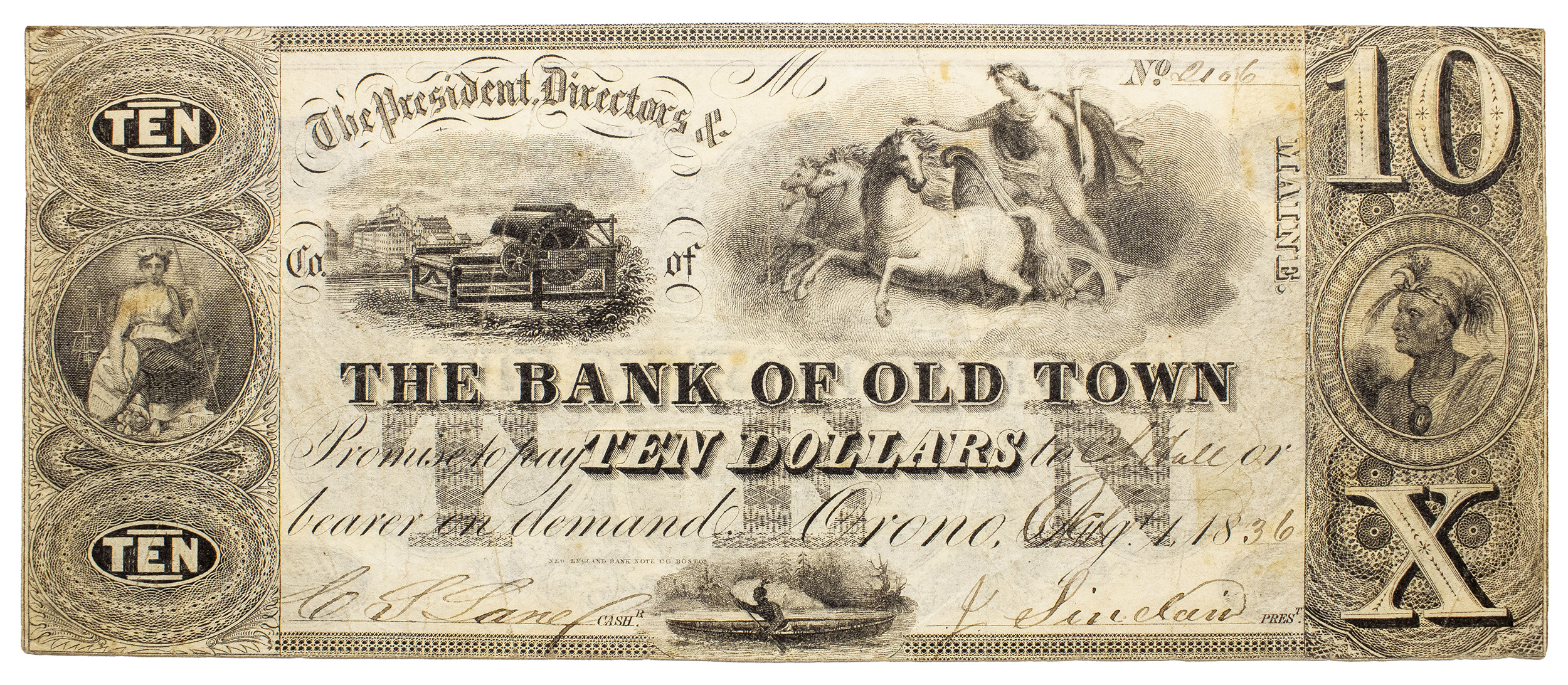 Maine. Orono. Crisp VF 1836 $10 Note