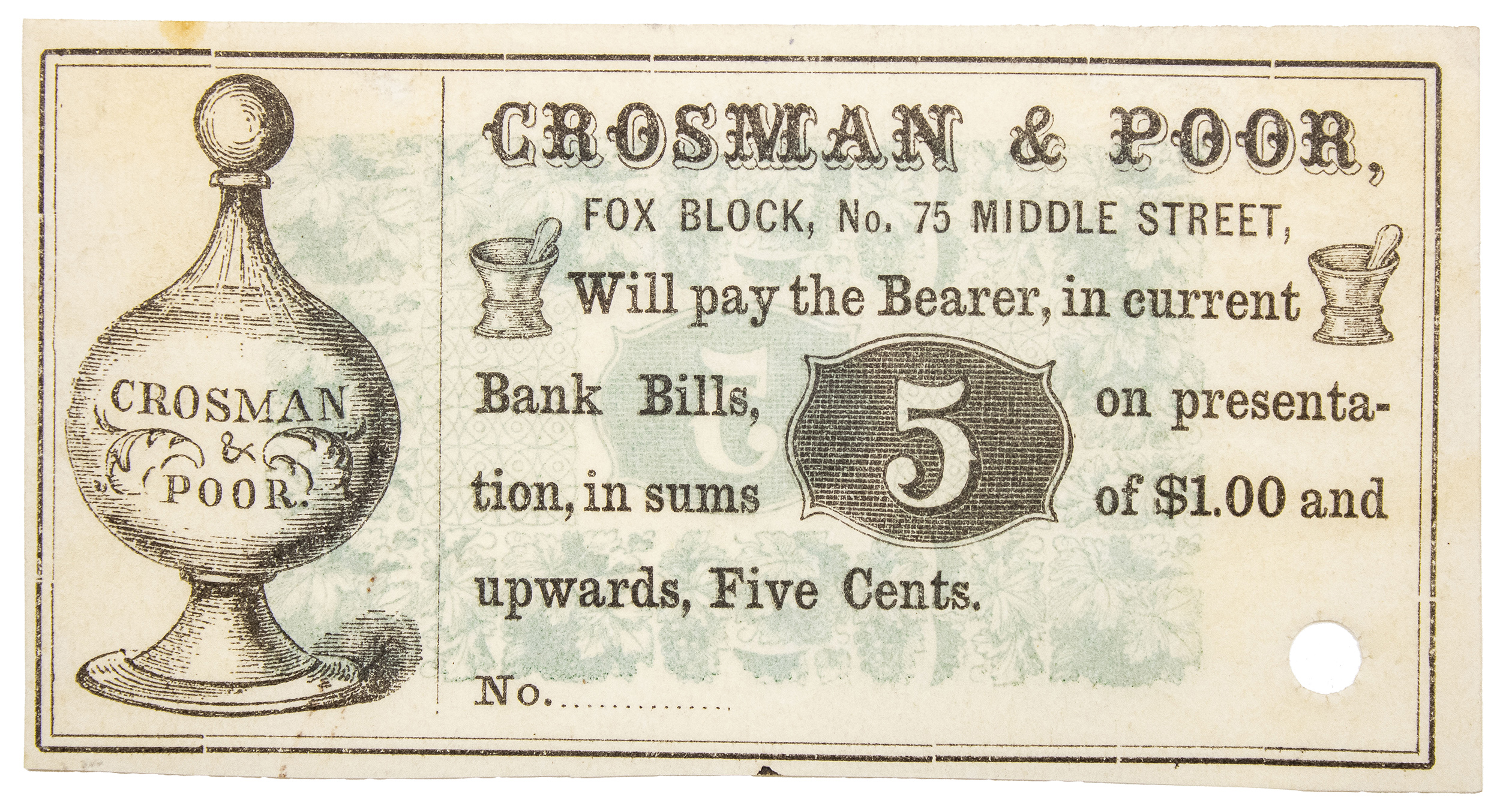Maine. Portland. Crisp New Crosman & Poor 5C Note