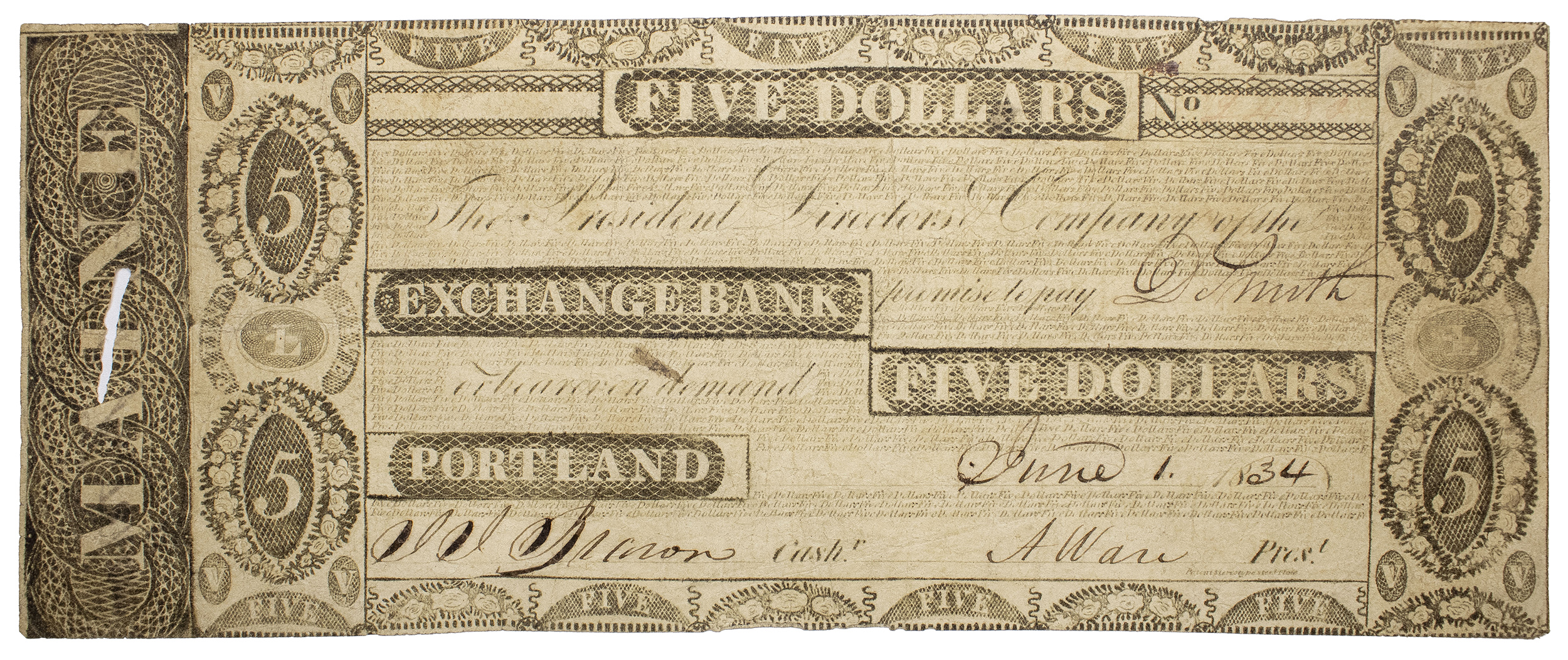 Maine. Portland. Fine-VF 1834 $5 Note