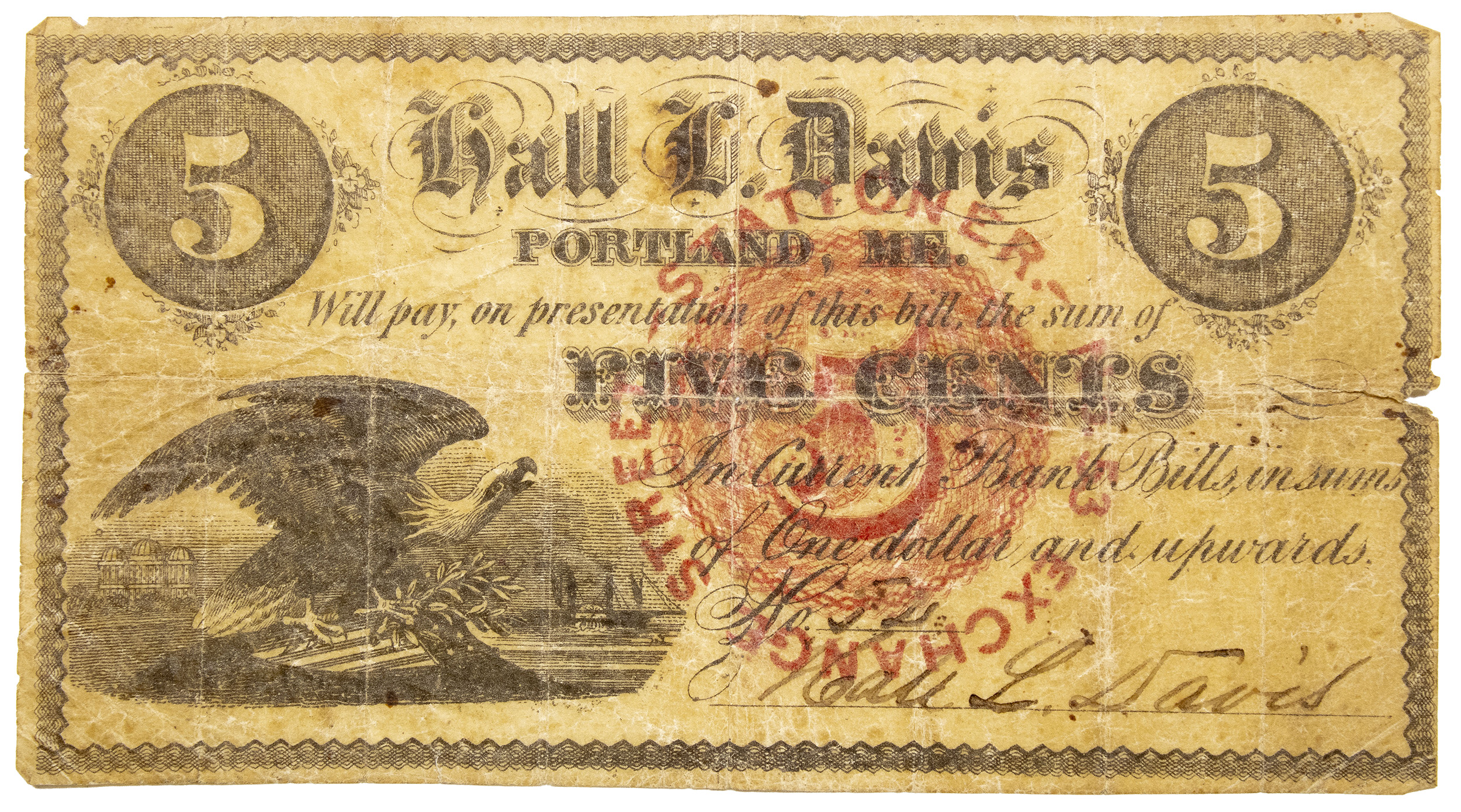 Maine. Portland. VG-Fine Hall L. Davis 5C Scrip