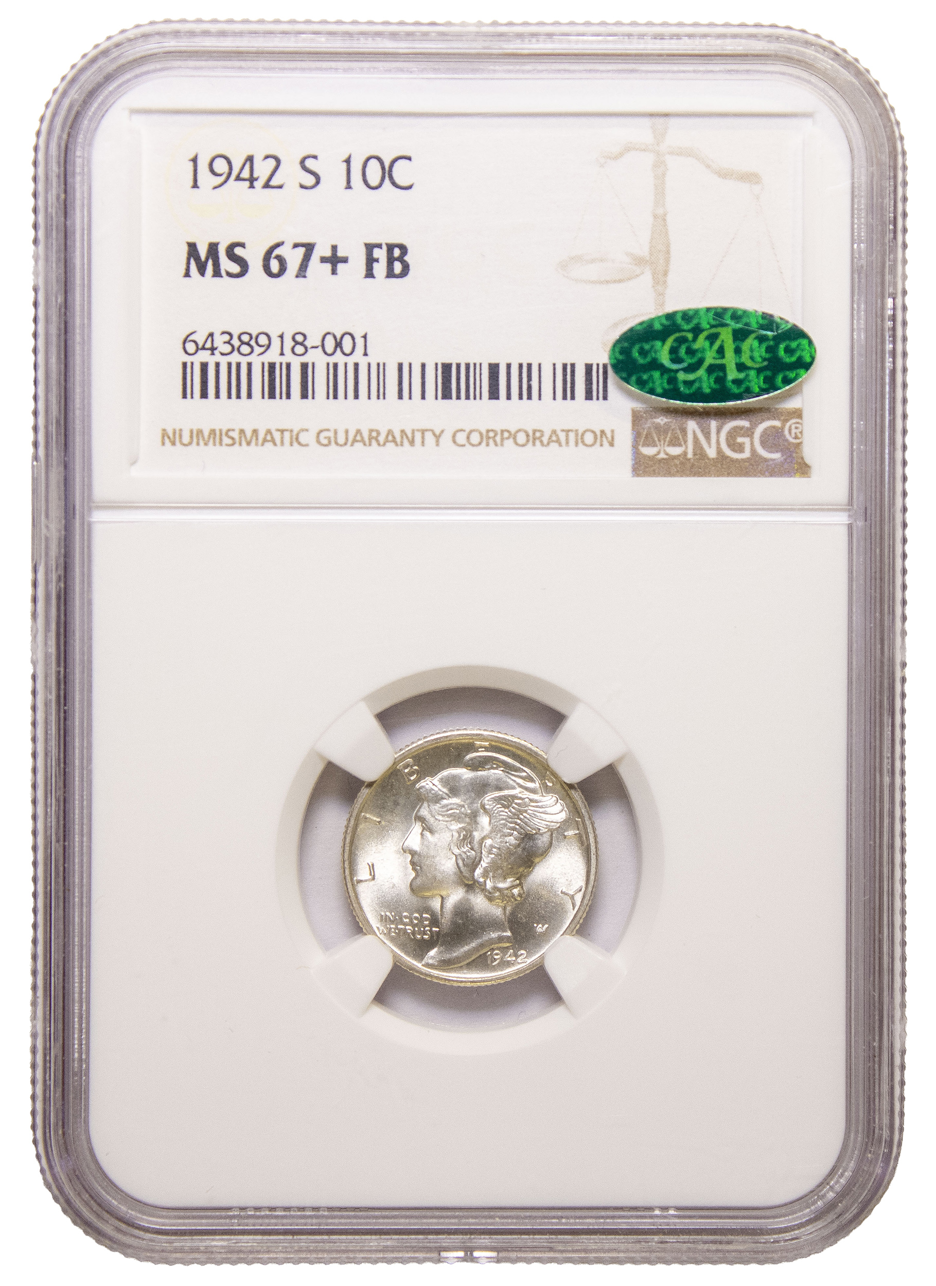 NGC MS-67+ FB CAC 1942-S Mercury Dime