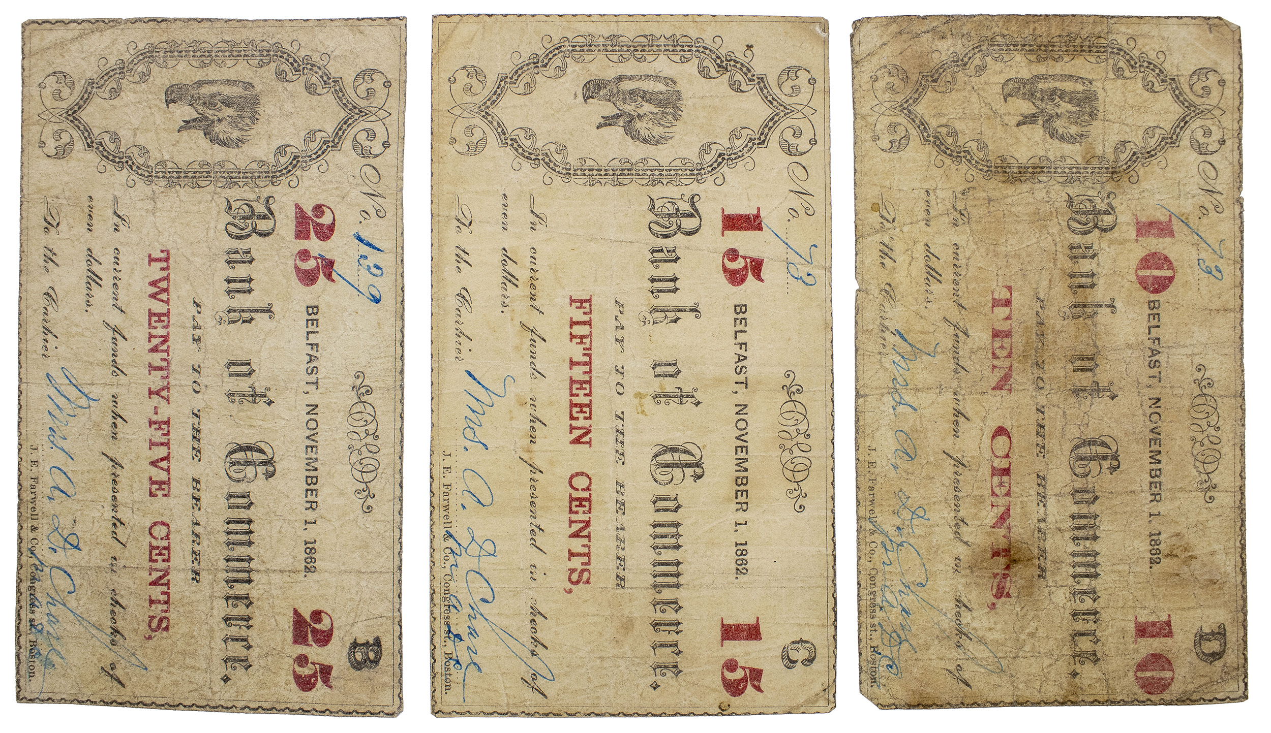 Maine. Belfast. Bank Of Commerce Fractional Trio