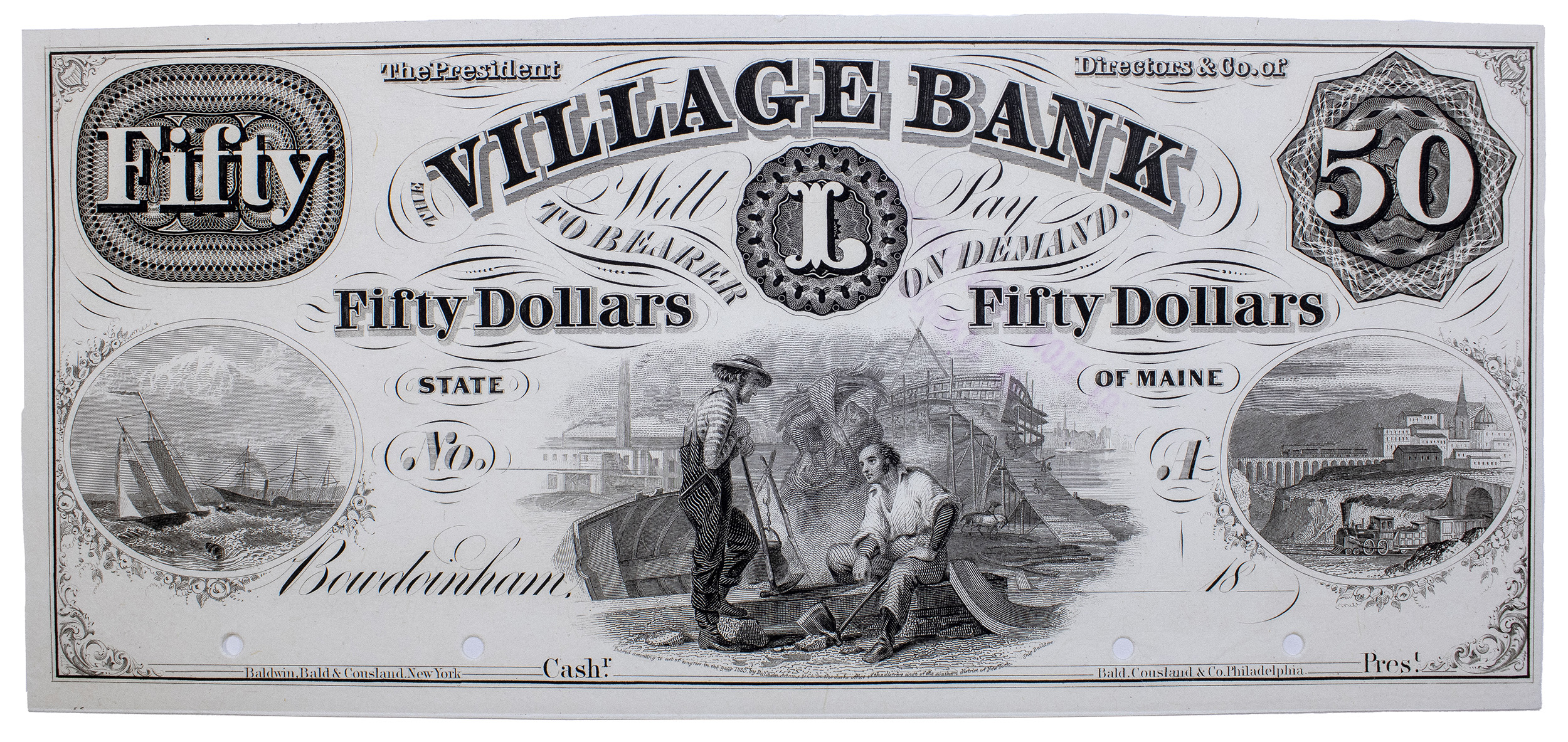 Maine. Bowdingham. Village Bank Rare $50 Proof