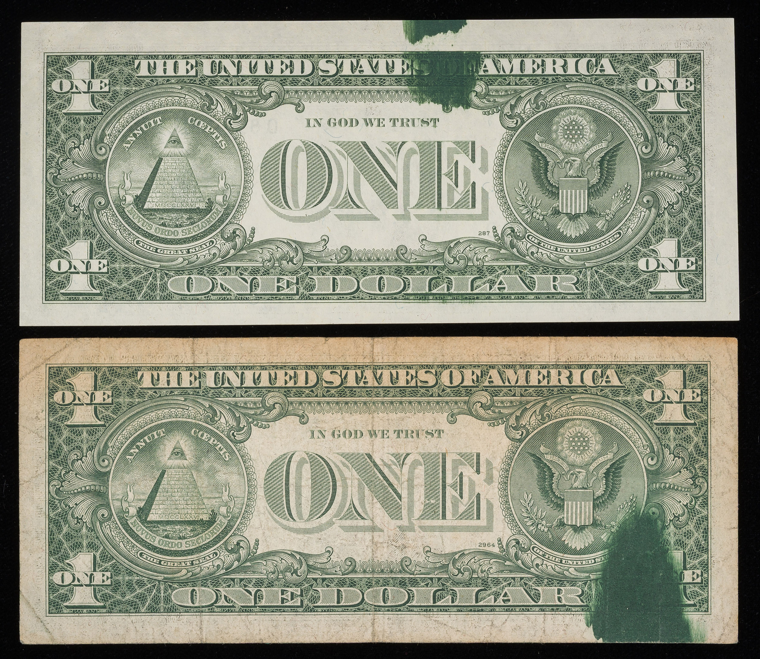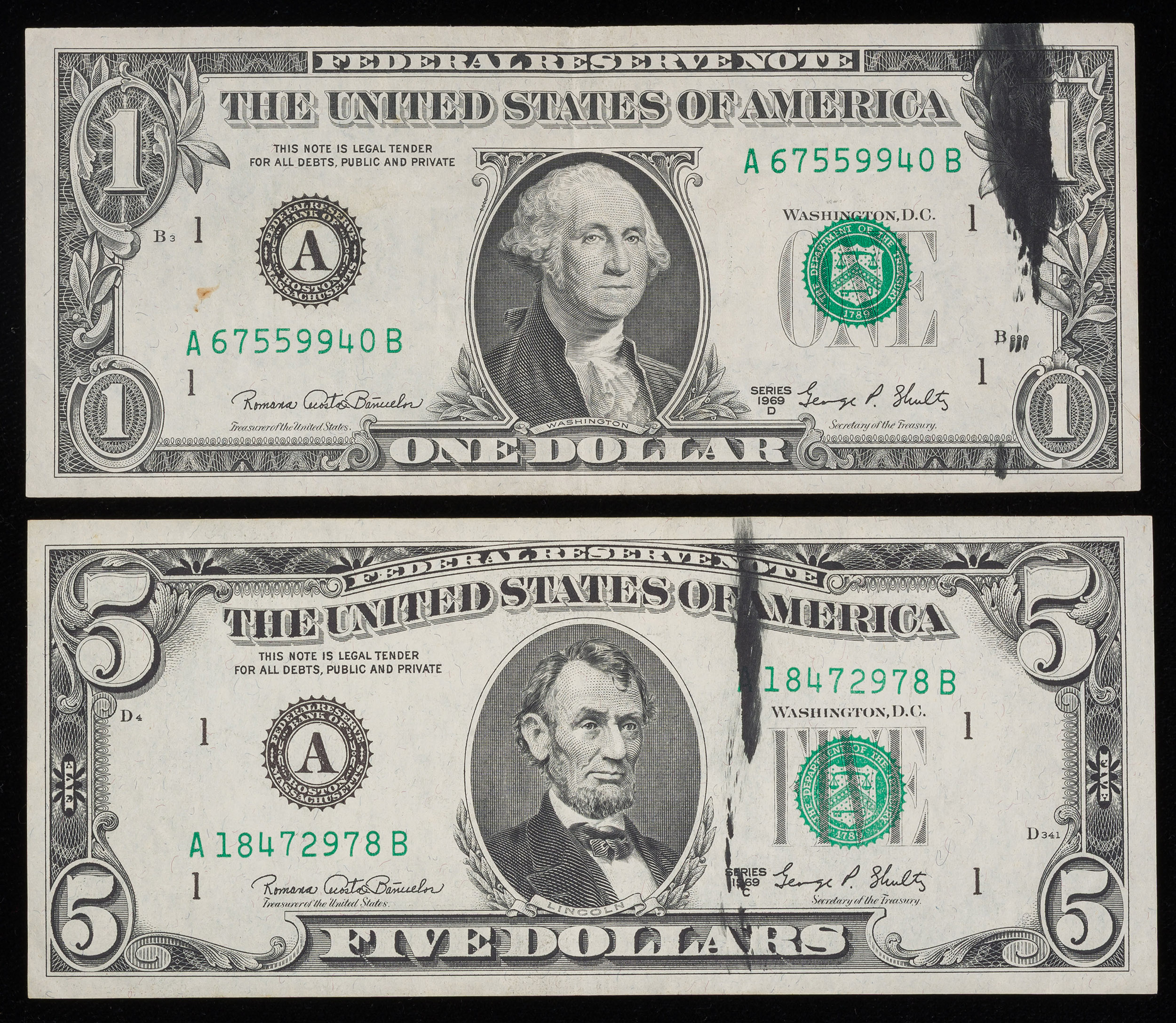 $1 & $5 FRN Ink Smear Error Pair