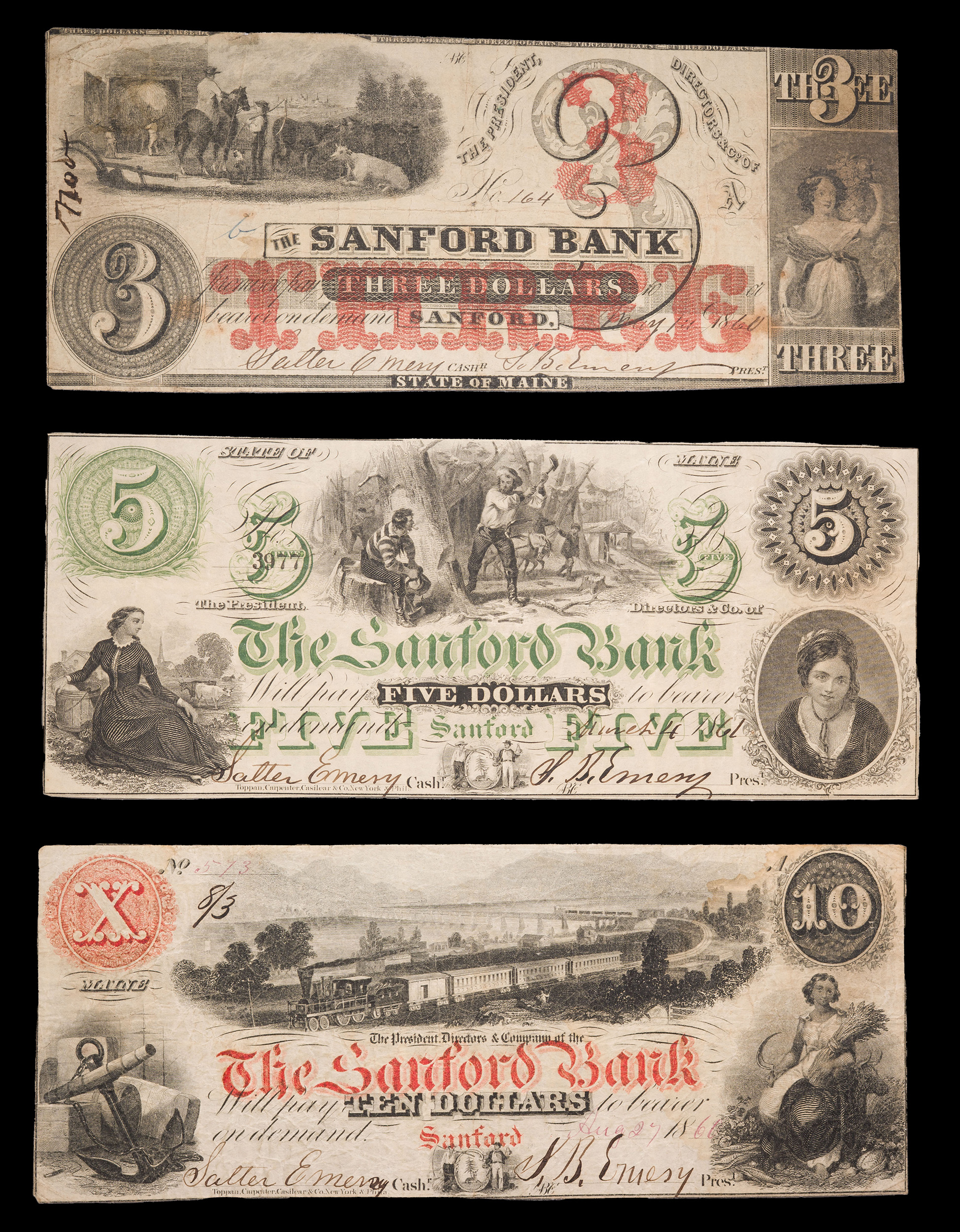 Maine. Sanford. $3, $5 & $10 Trio