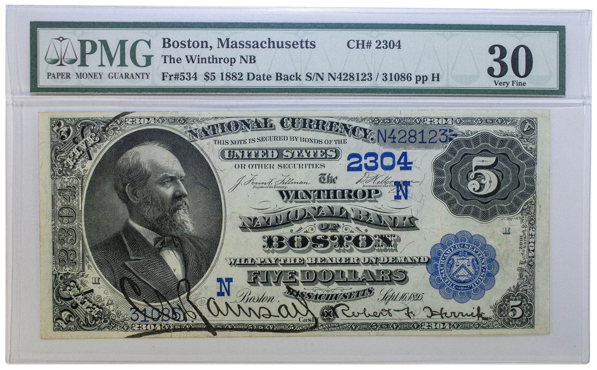 Massachusetts. PMG VF-30 1882 Date Back $5