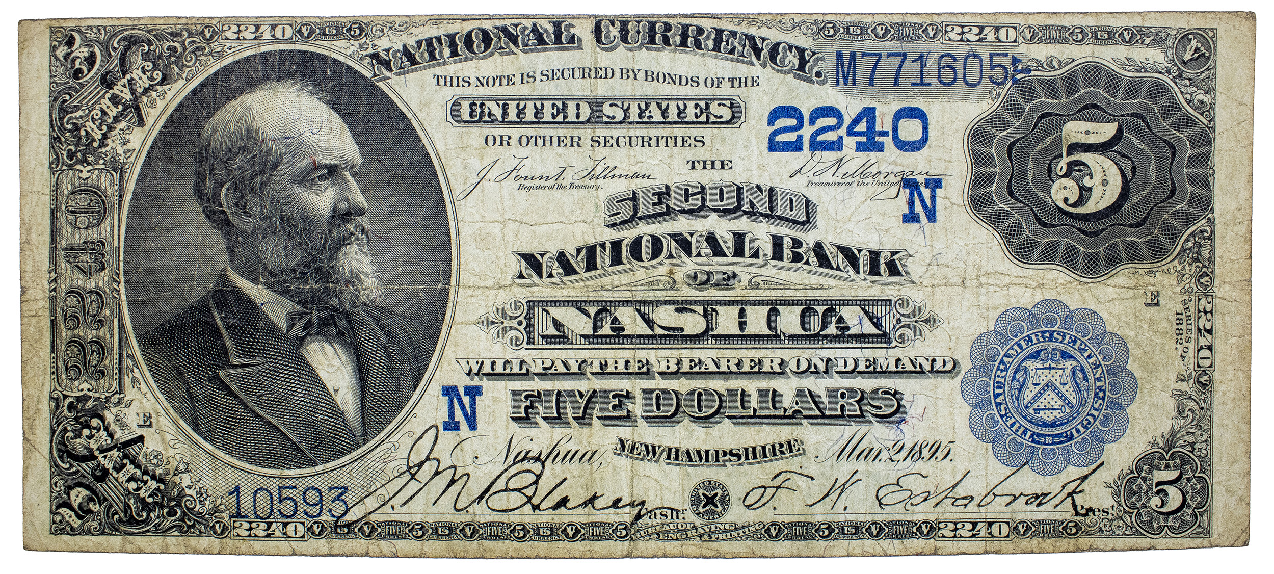 New Hampshire. Fine to VF 1882 Date Back $5 Note