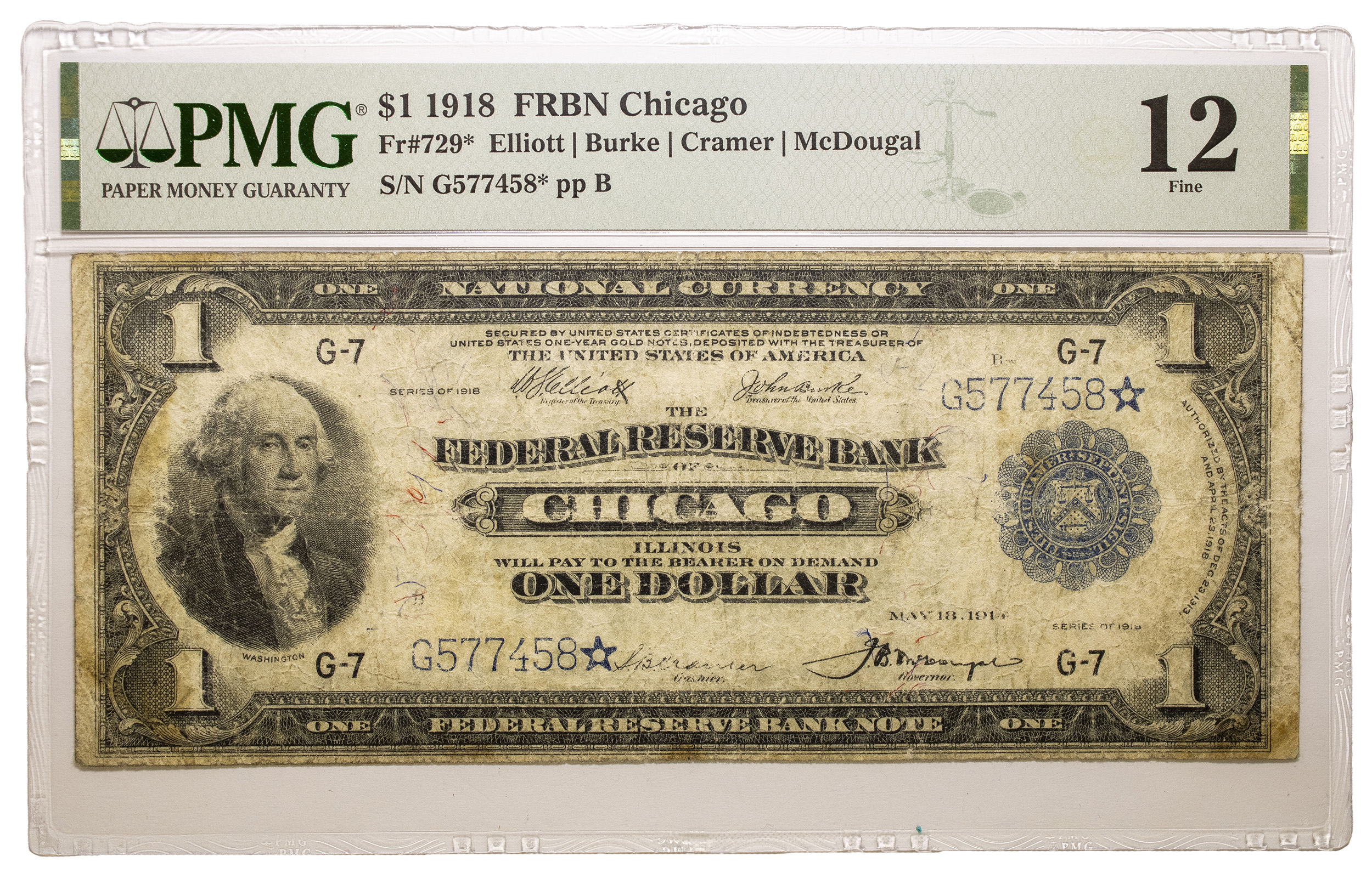 PMG F-12 1918 $1 FRB Star Note