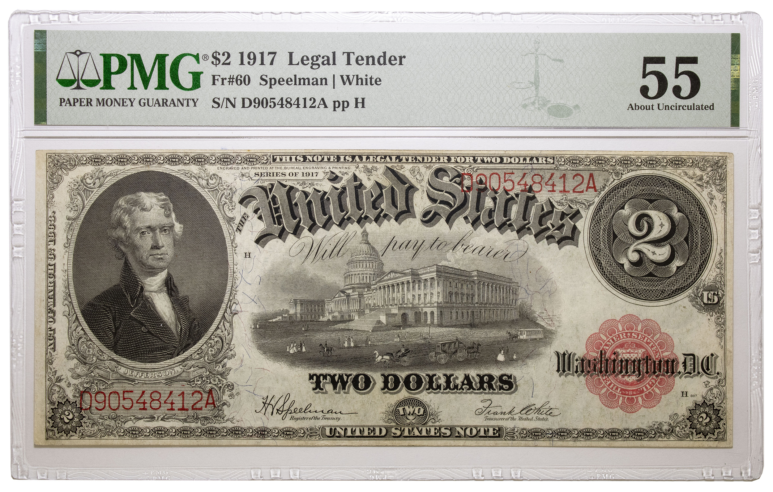 PMG AU-55 1917 $2 Legal Tender