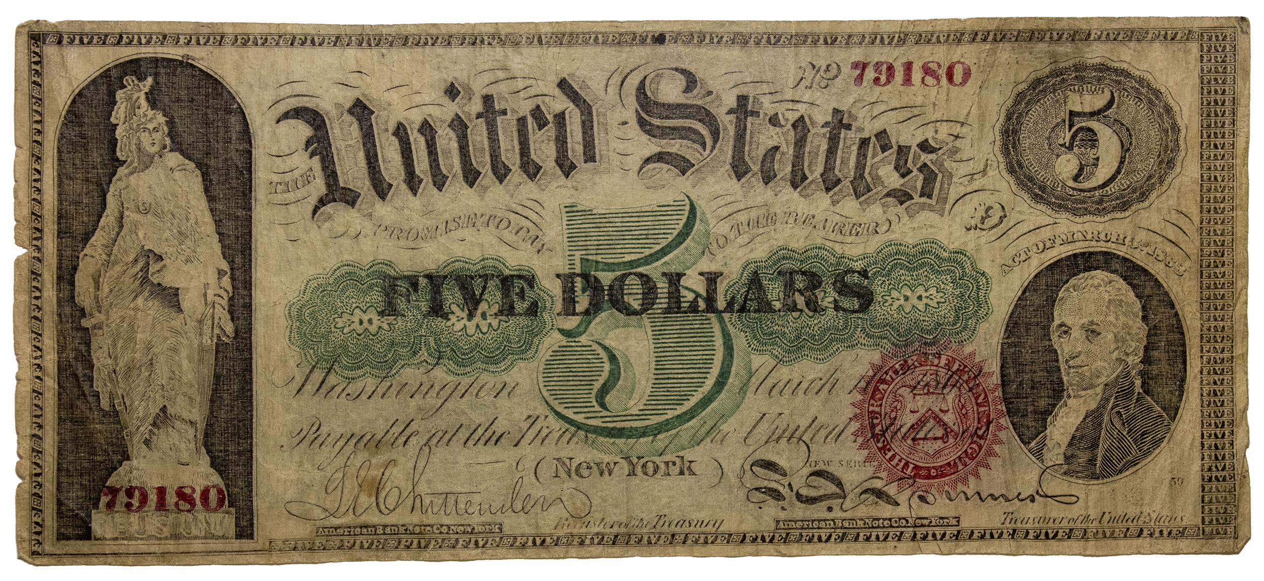F/VF Contemporary Counterfeit 1863 $5