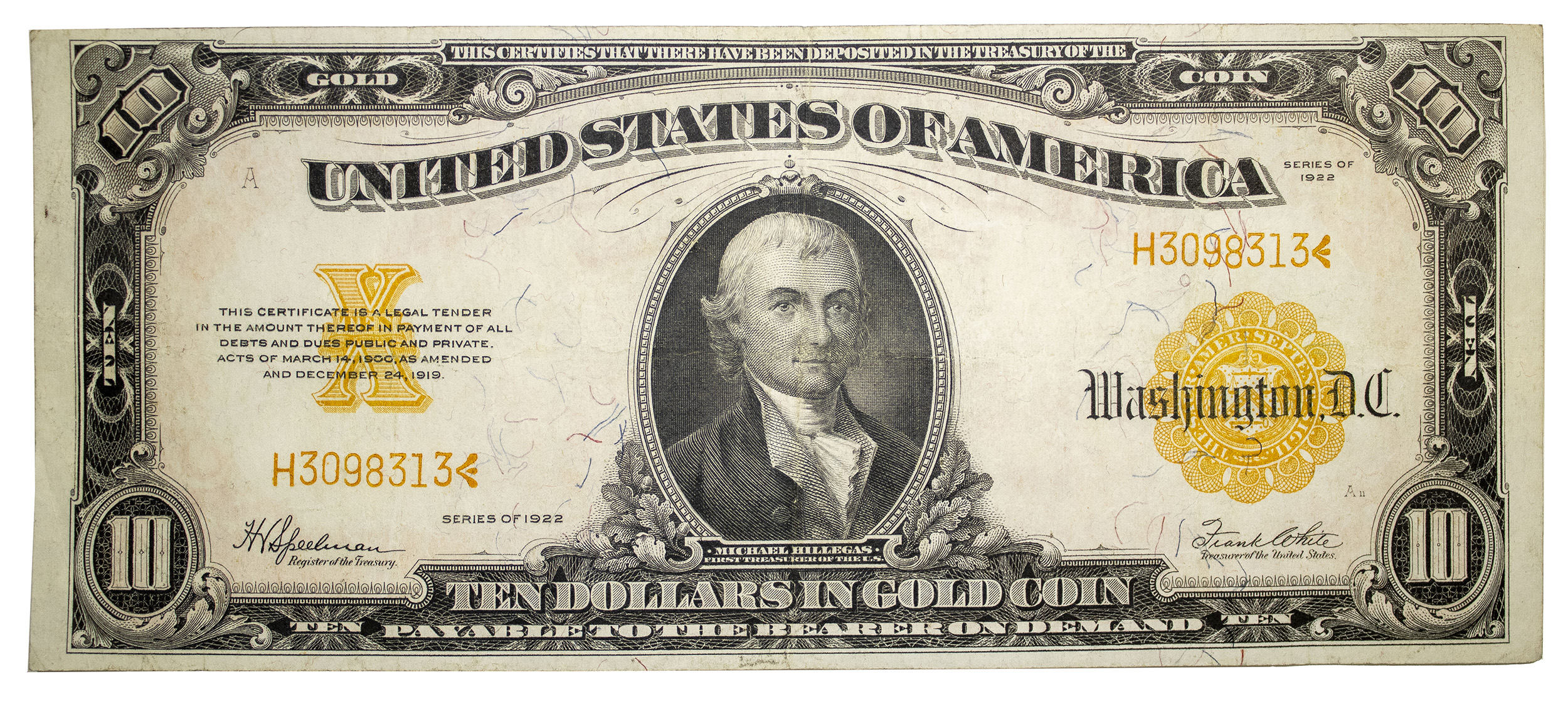 EF Series 1922 $10 Gold Coin Note