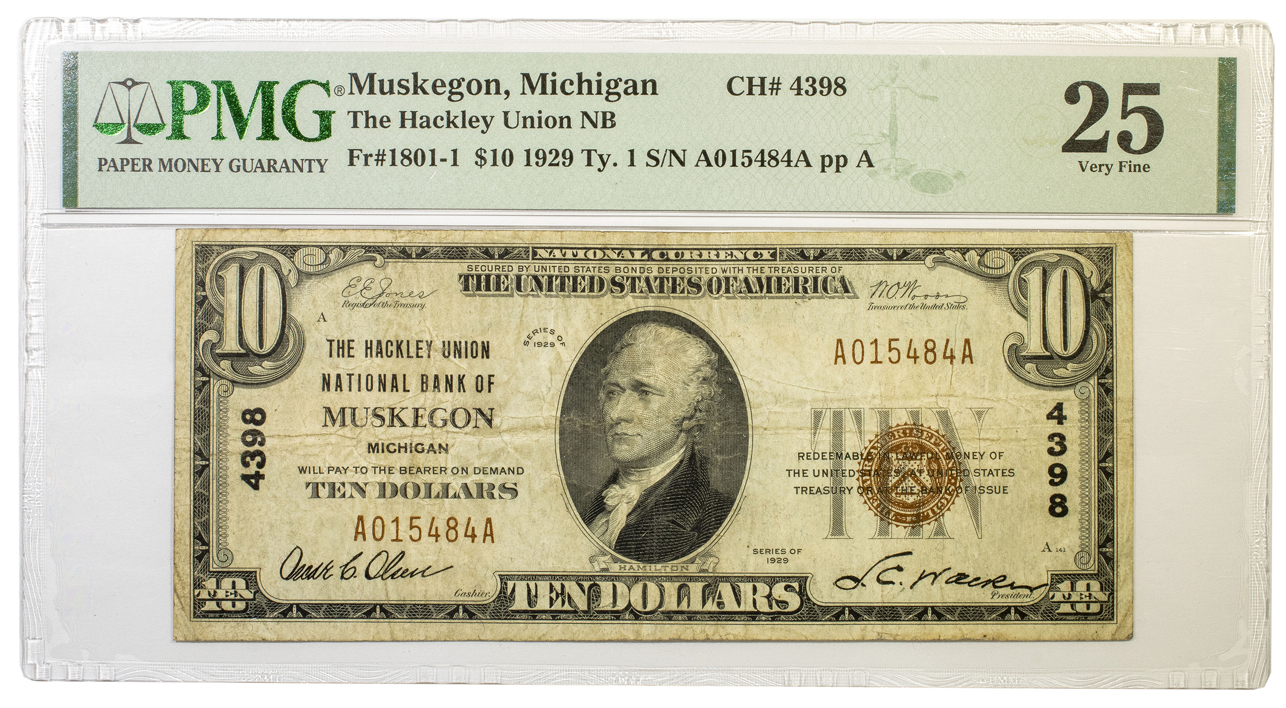 PMG VF-25 Series 1929 National Currency $10