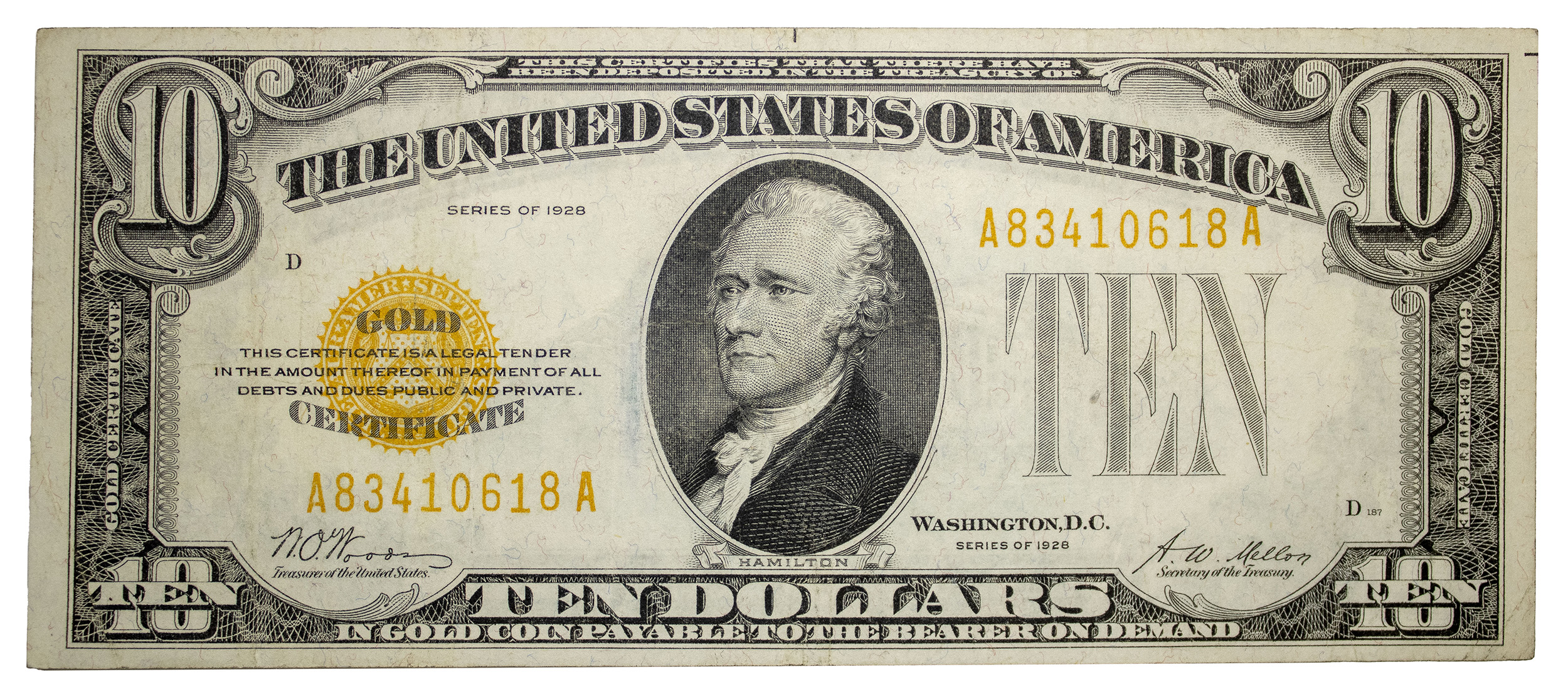 Crisp AU Series 1928 $10 Gold Certificate
