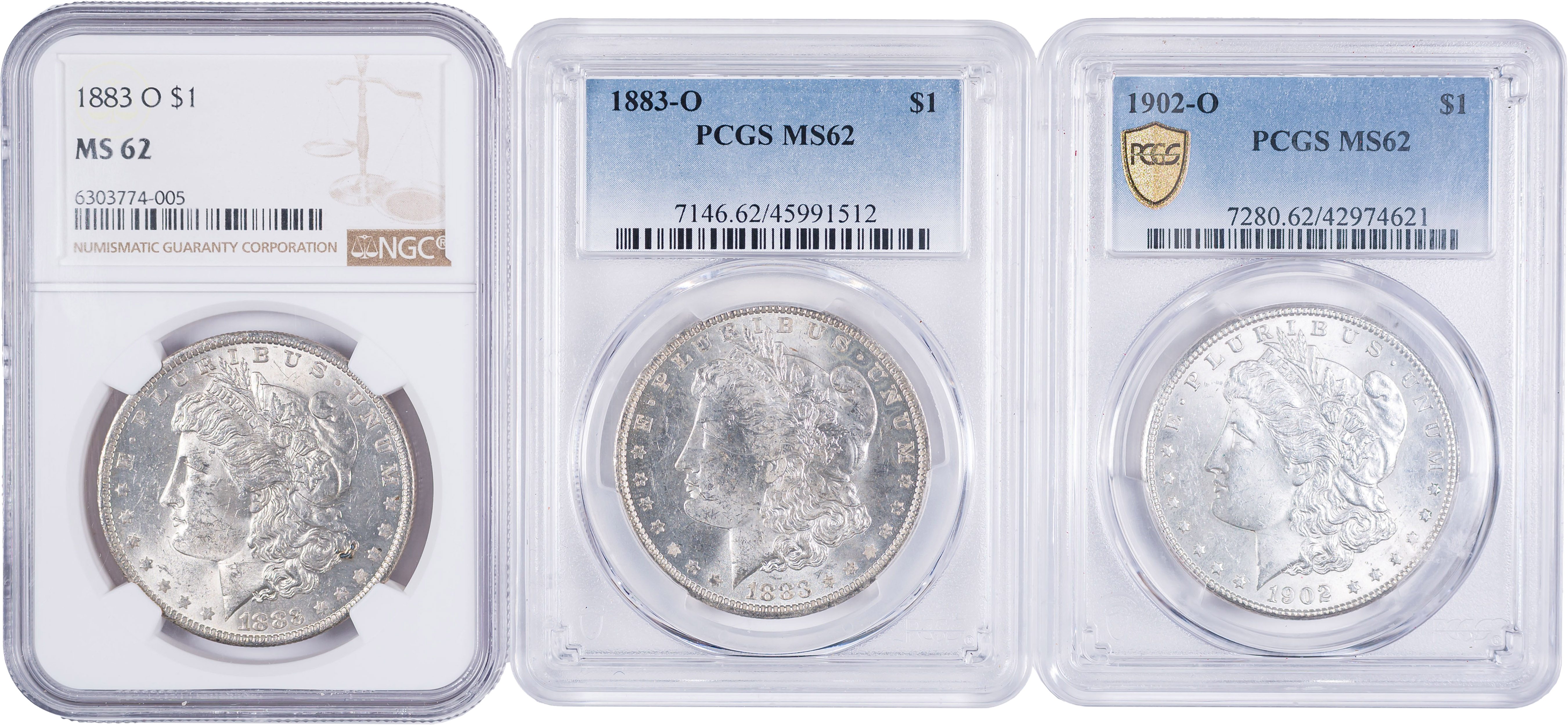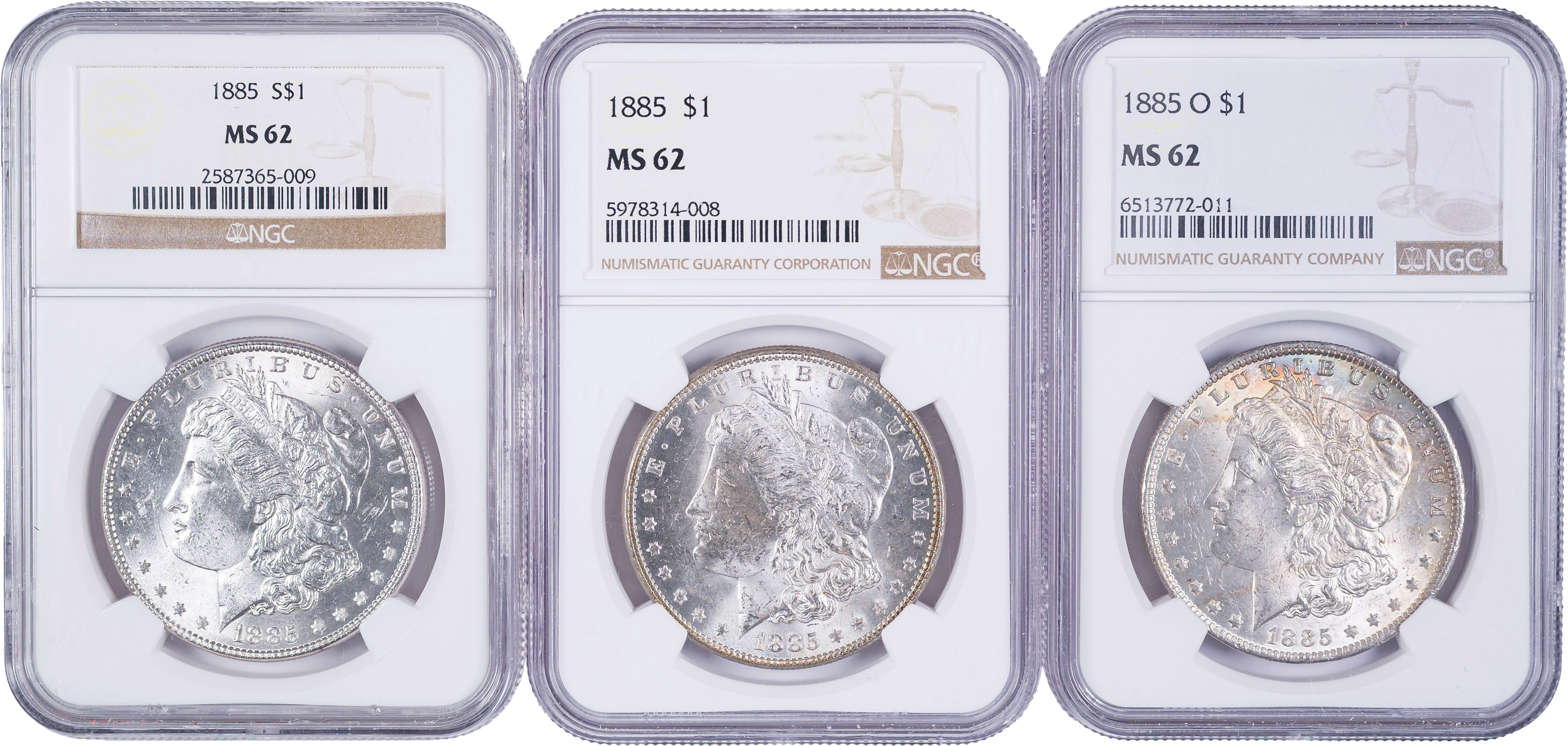 NGC-Certified MS-62 Morgan Dollar Threesome