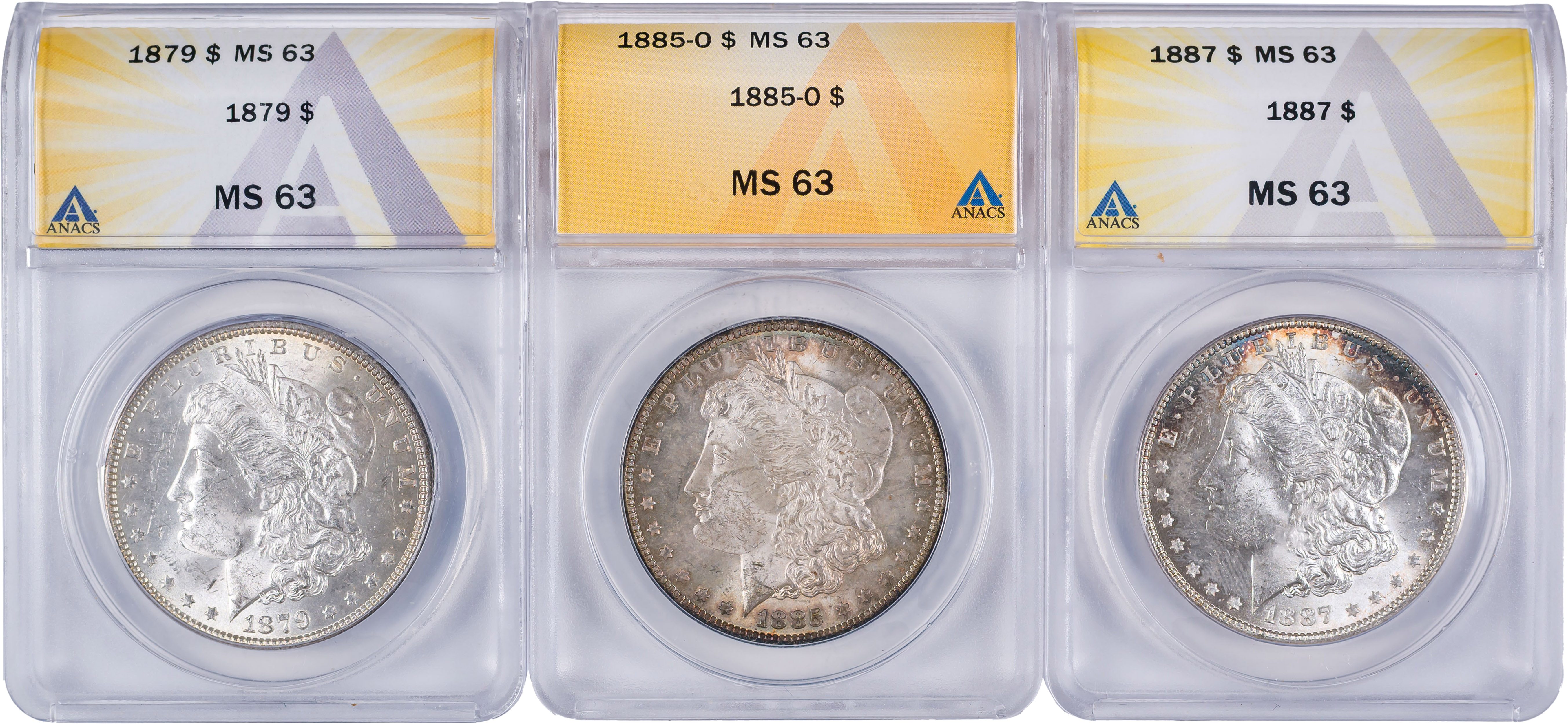ANACS-Certified MS-63 Morgan Dollar Threesome