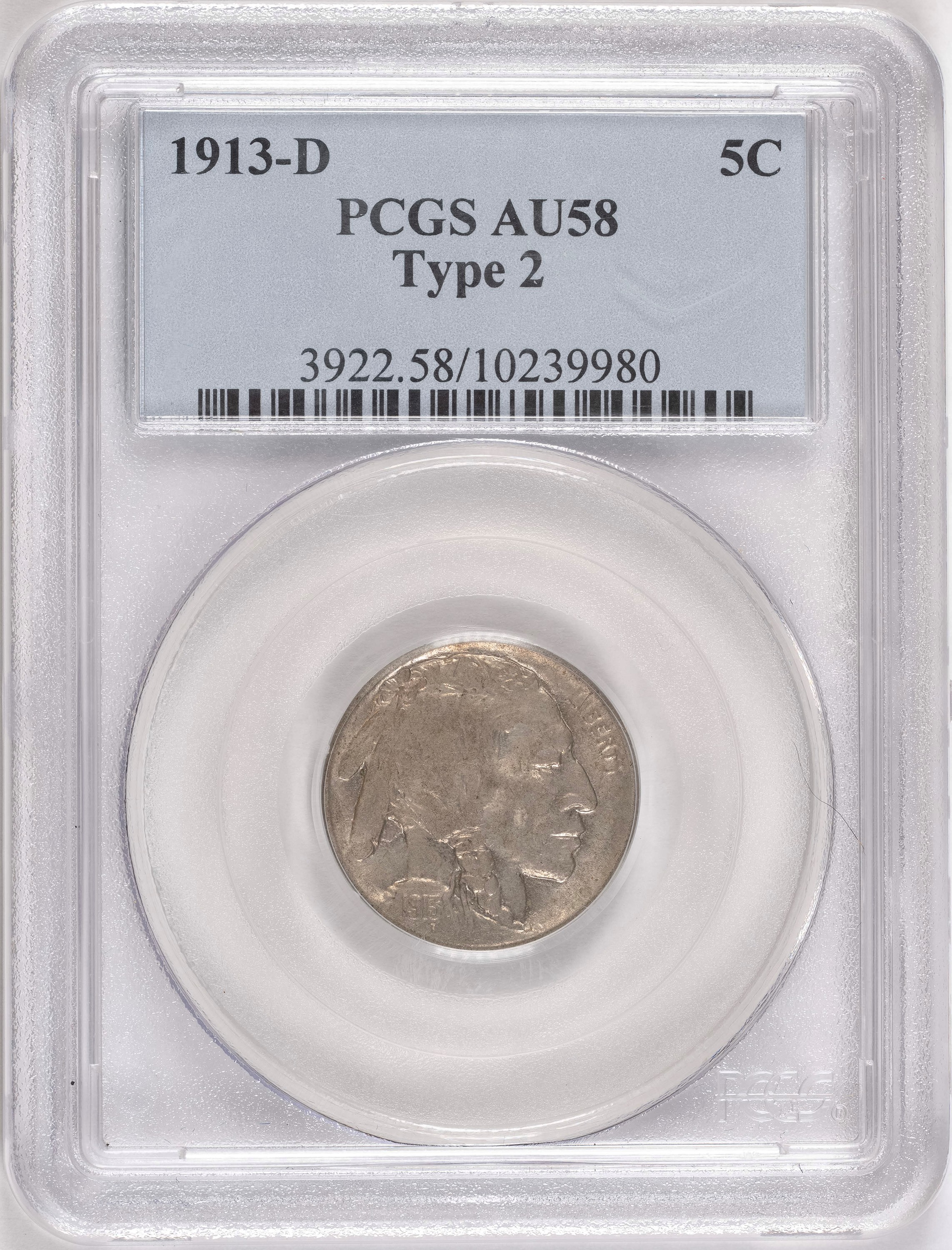 PCGS AU-58 1913-D TII Buffalo Nickel