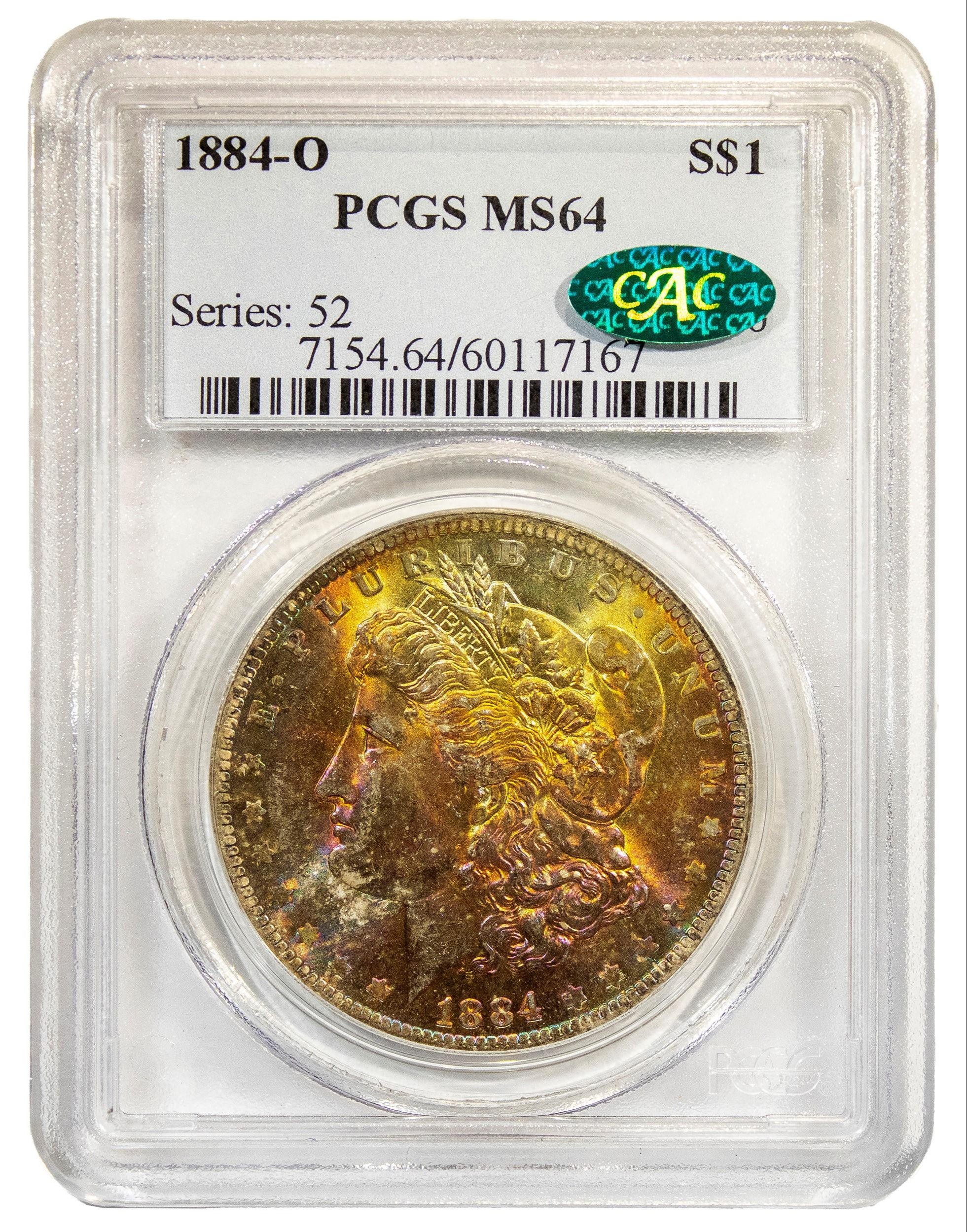 Wonderfully Toned PCGS CAC MS-64 1884-O Morgan $1