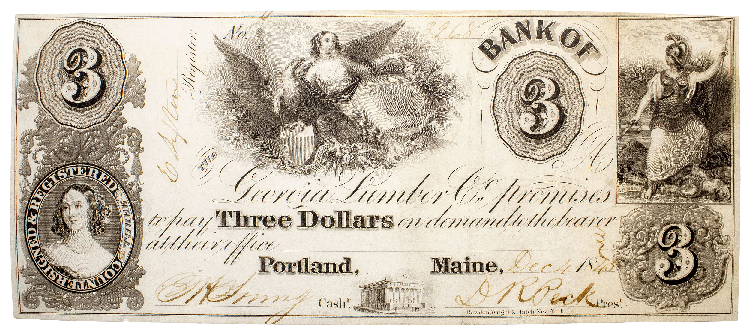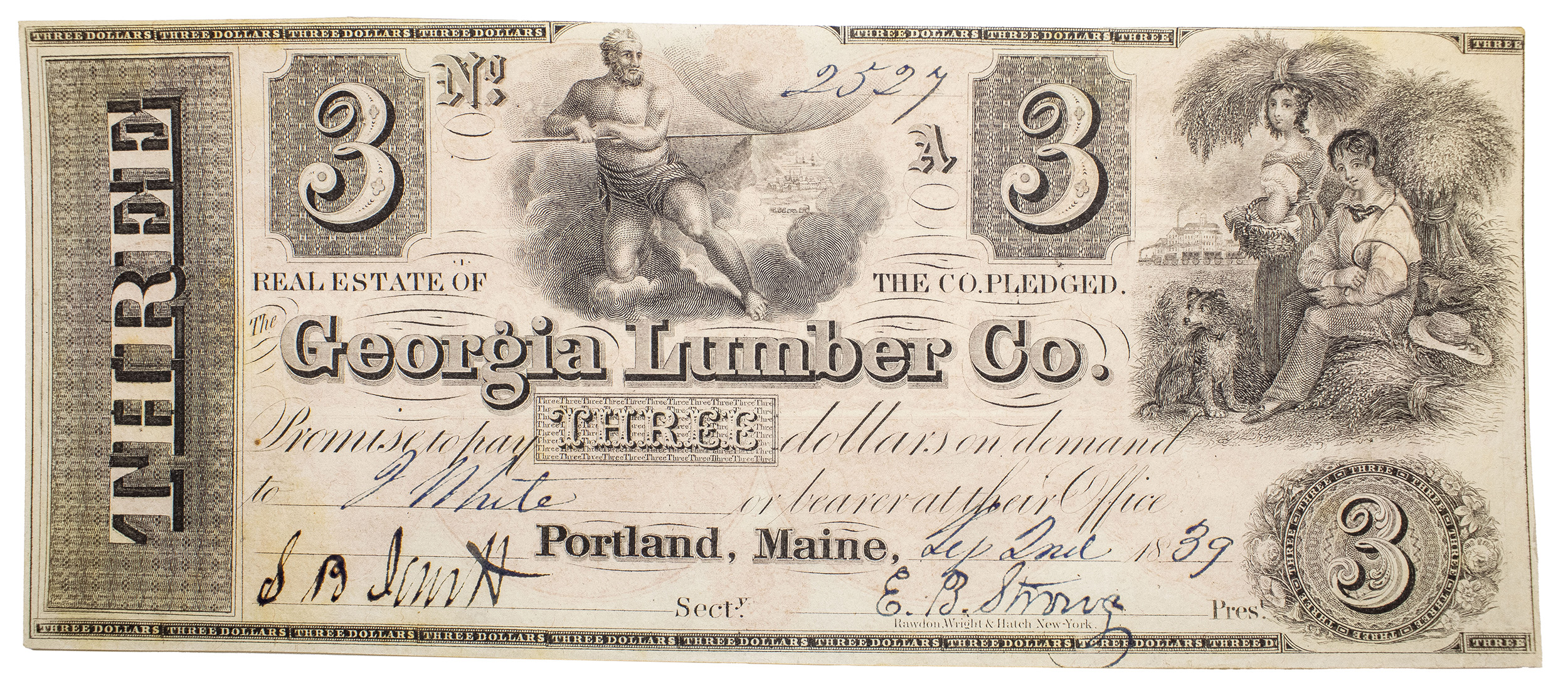 Maine. Portland. New Georgia Lumber Co. $3 Note