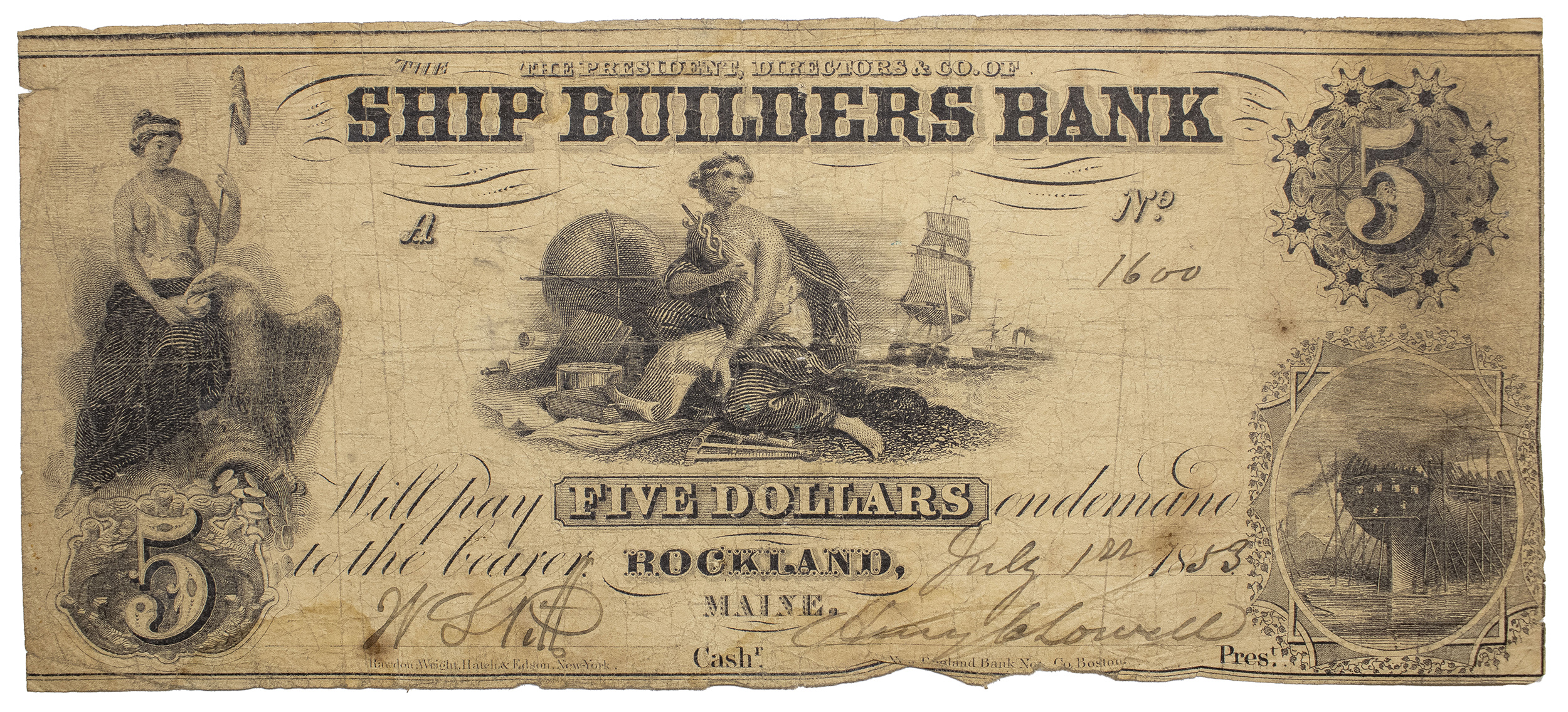 Maine. Rockland. VG-Fine 1853 $5 Note