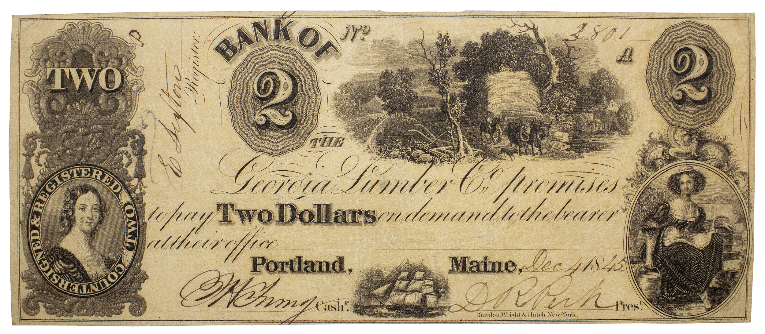 Maine. Portland. VF+ Georgia Lumber Co. $2 Note