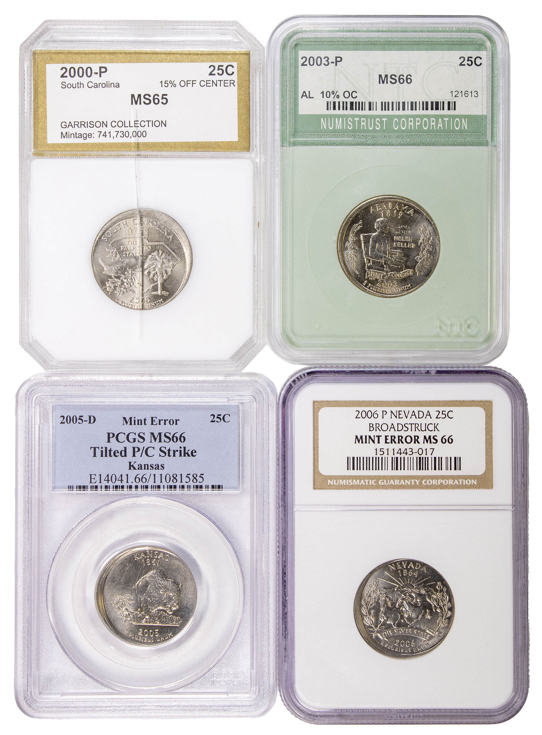 4 Piece NGC 2000 Mass State Quarter Error Lot