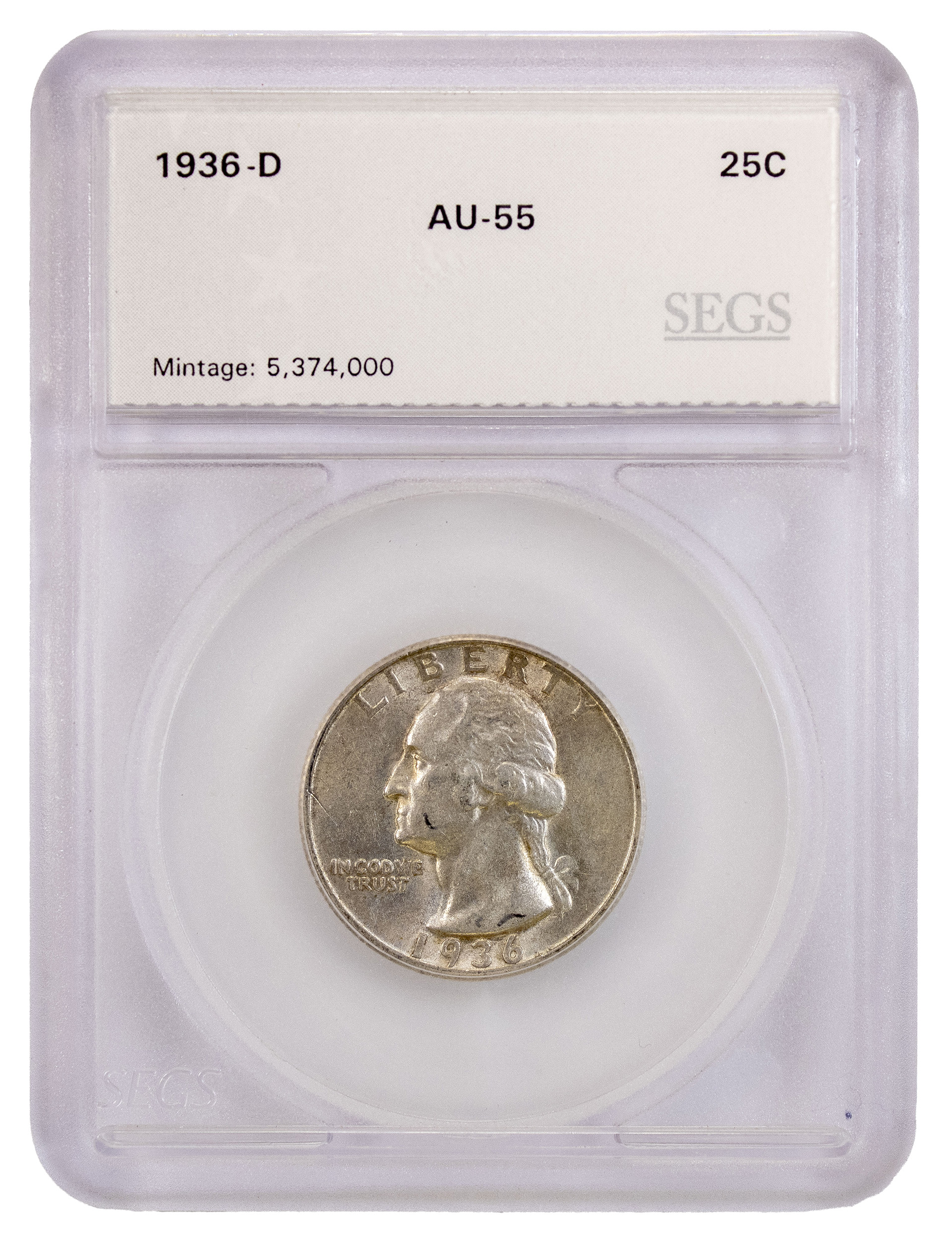 SEGS AU-55 1936-D Washington Quarter
