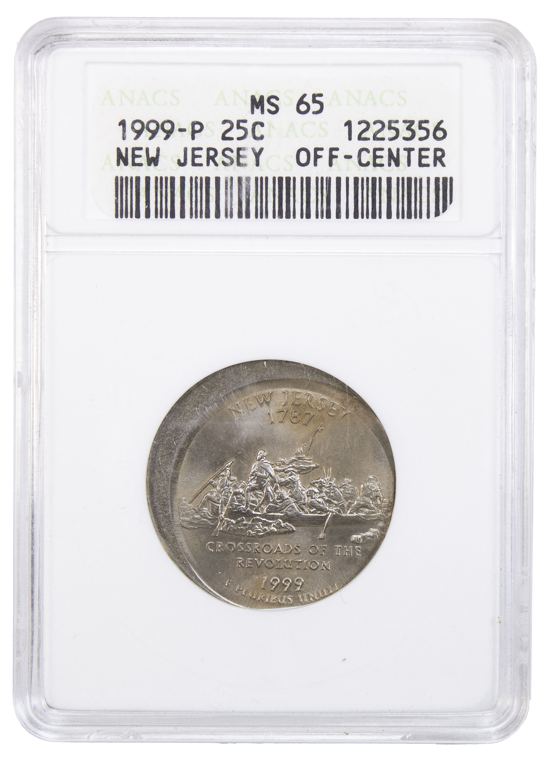 ANACS MS-65 Off Center New Jersey Quarter