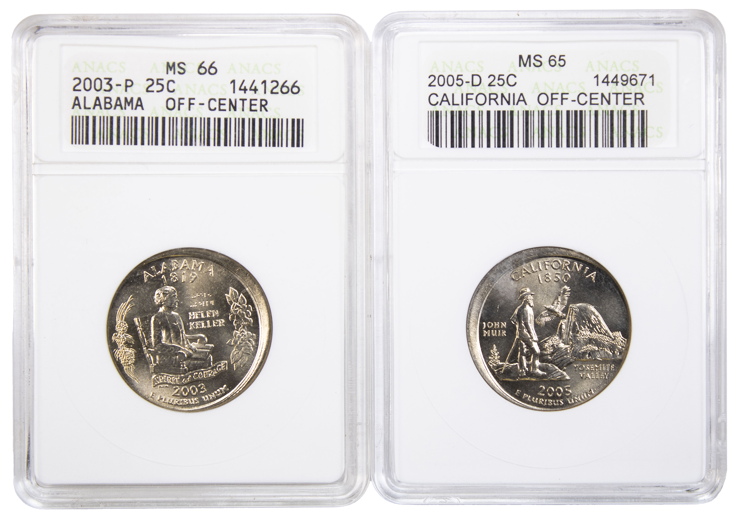 ANACS Off Center State Quarter Pair