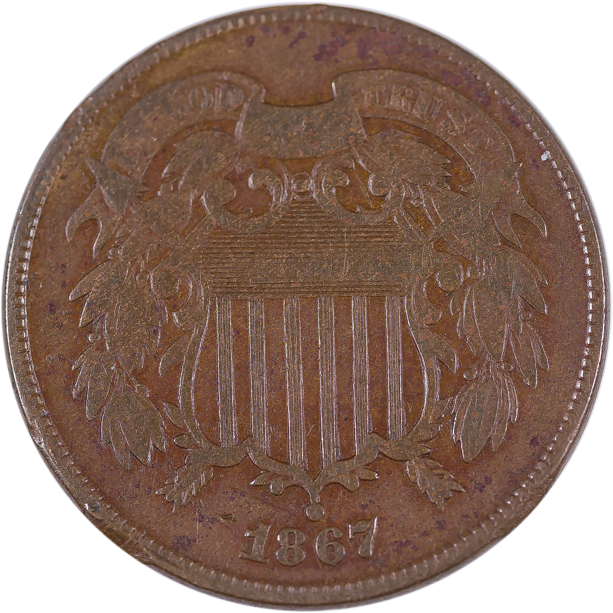 Fine Details 1867 Double Die Two-Cents