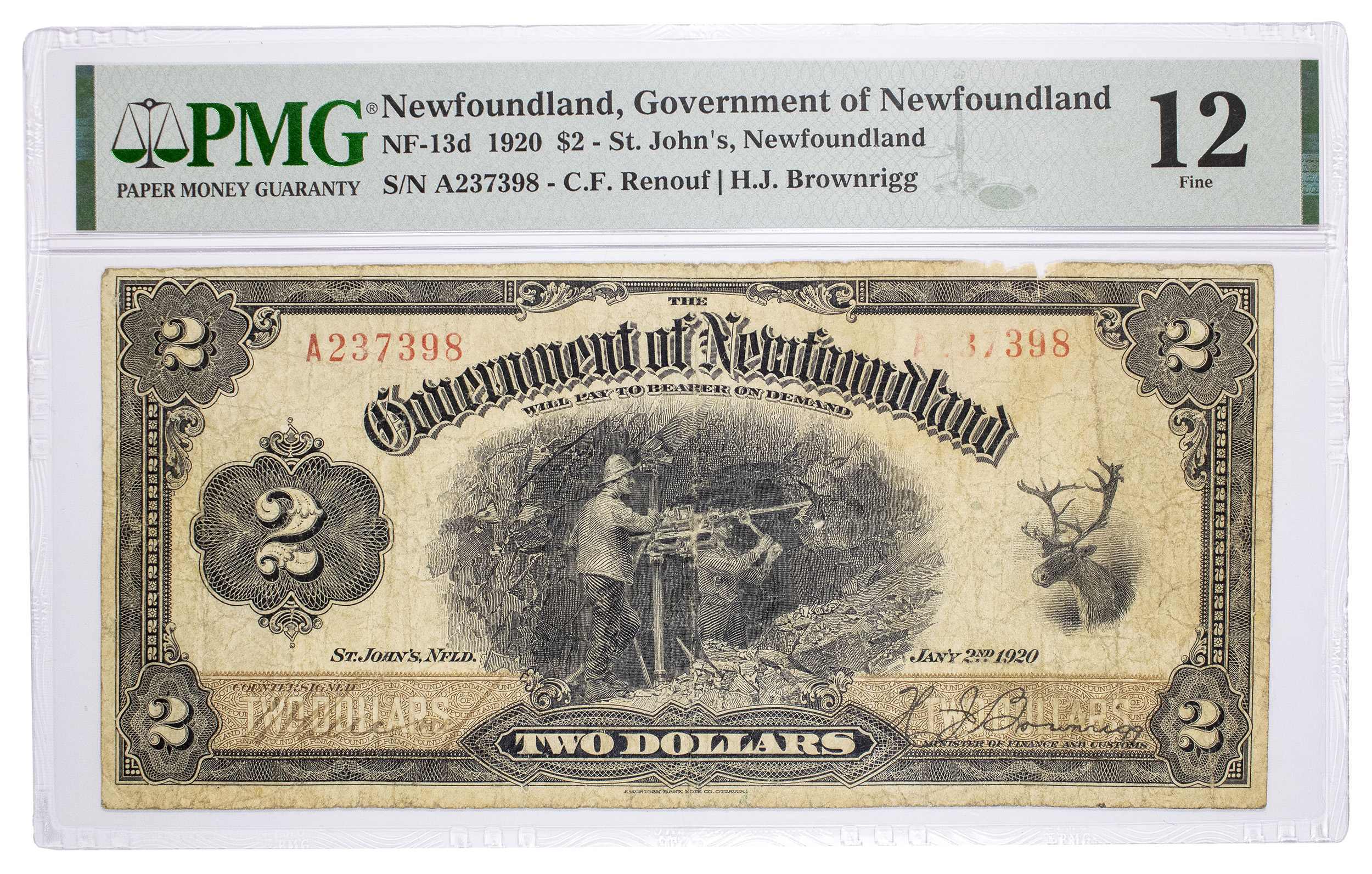 Newfoundland. PMG Fine-12 1920 $2 Note Rarity