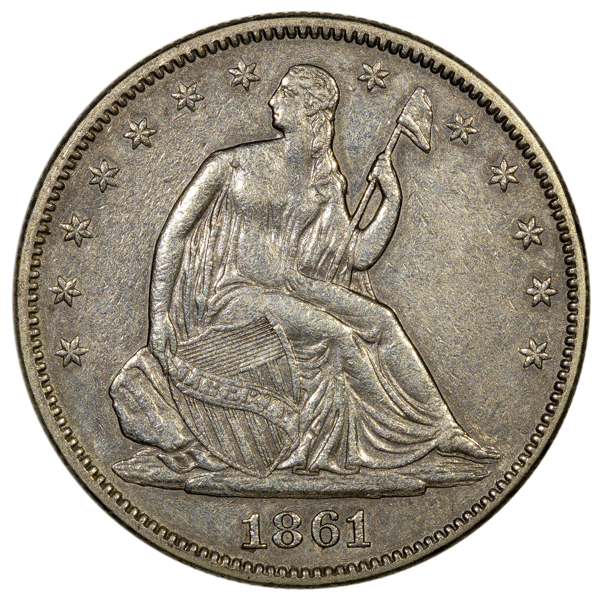 AU Details 1861 Seated Half Dollar