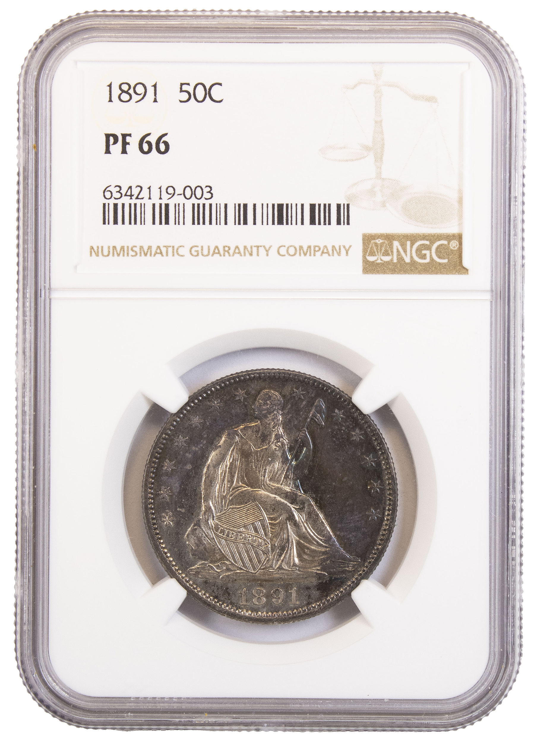 NGC Proof-66 Toned 1891 Seated Half Dollar