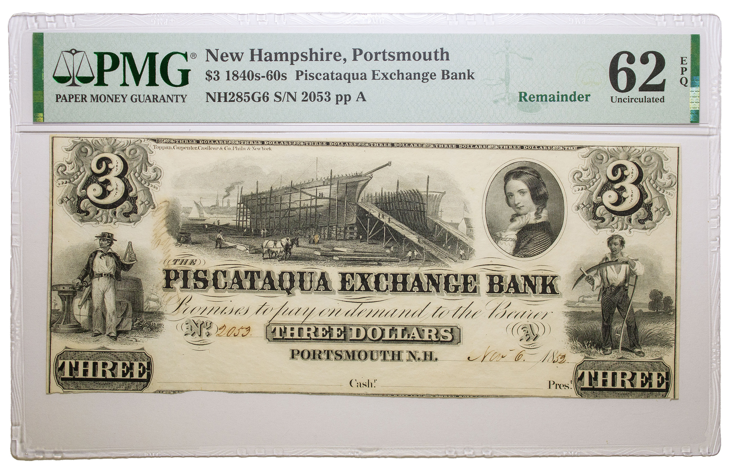 New Hampshire. Portsmouth. PMG UNC-62 EPQ $3