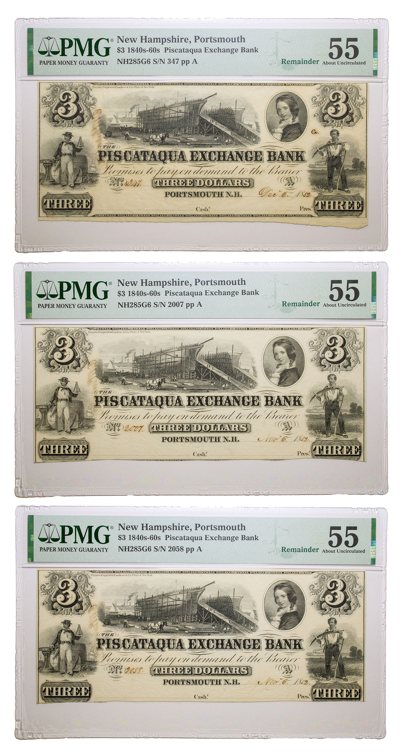 New Hampshire. Portsmouth. PMG AU-55 $3 Trio