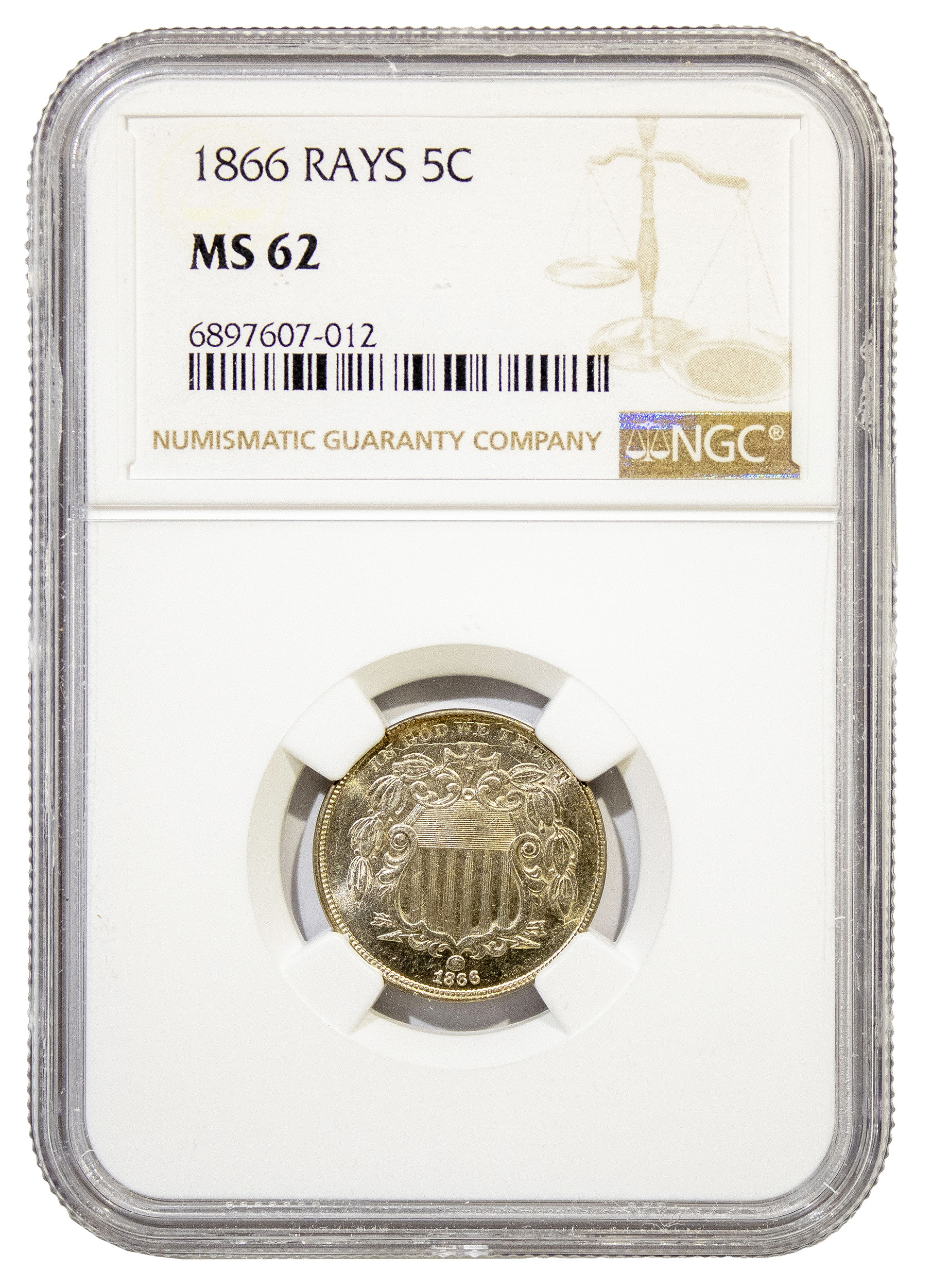 NGC MS-62 1866 Shield Nickel