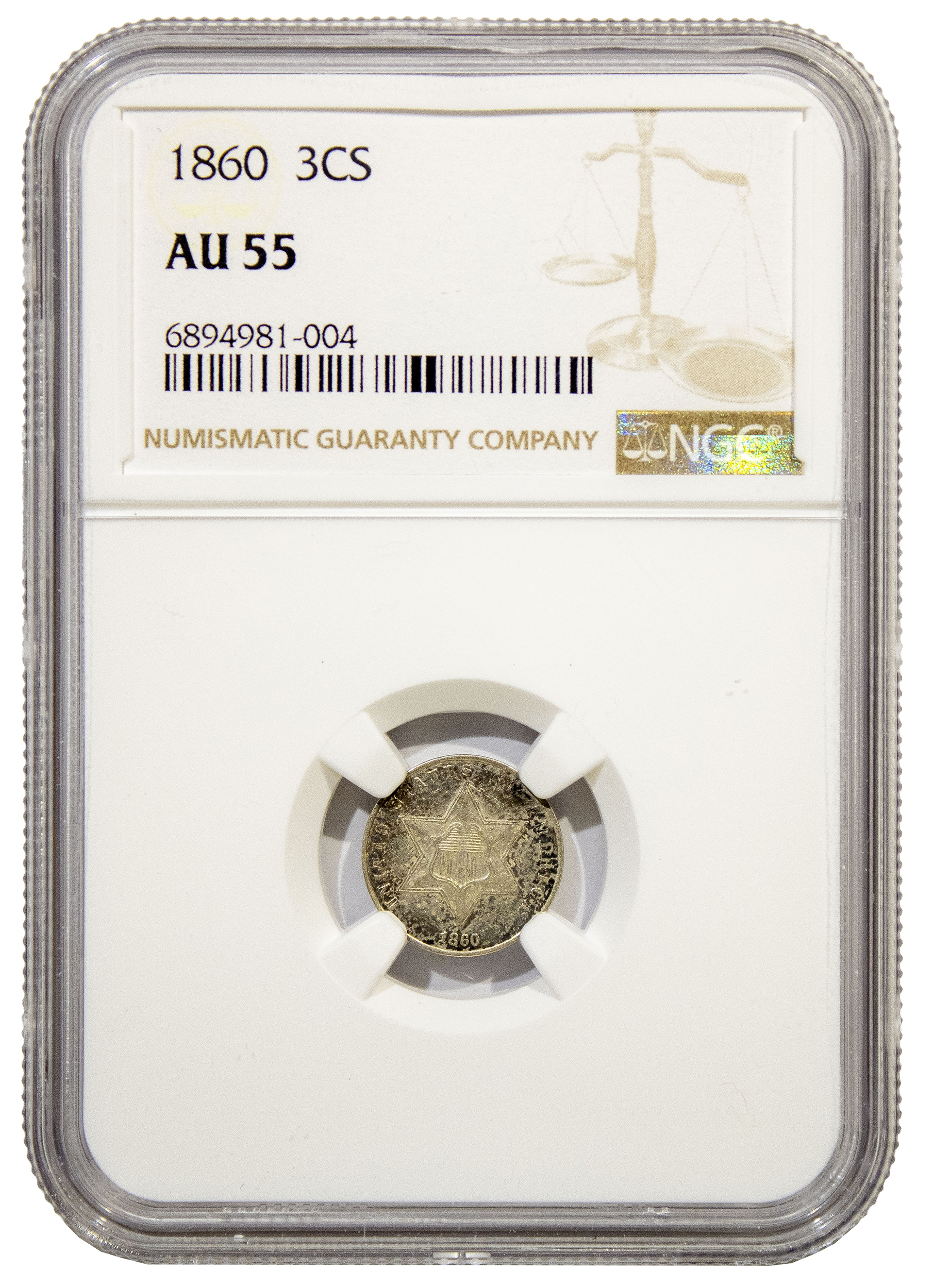 NGC AU-55 1860 Silver Three-Cents