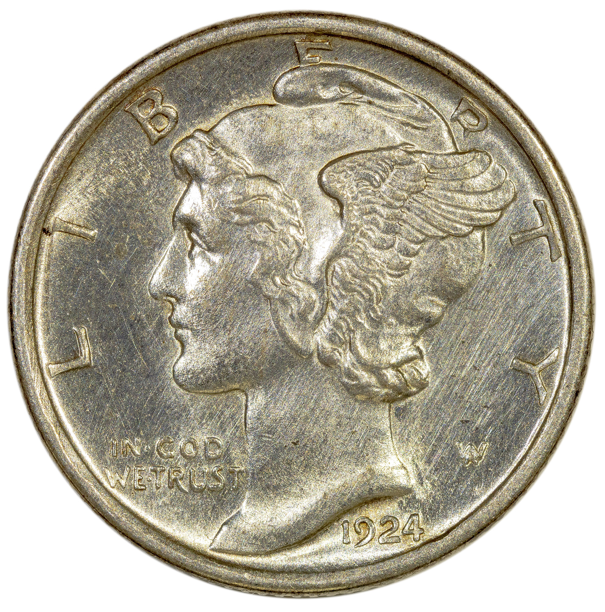 MS-60 FSB Details 1924-D Dime