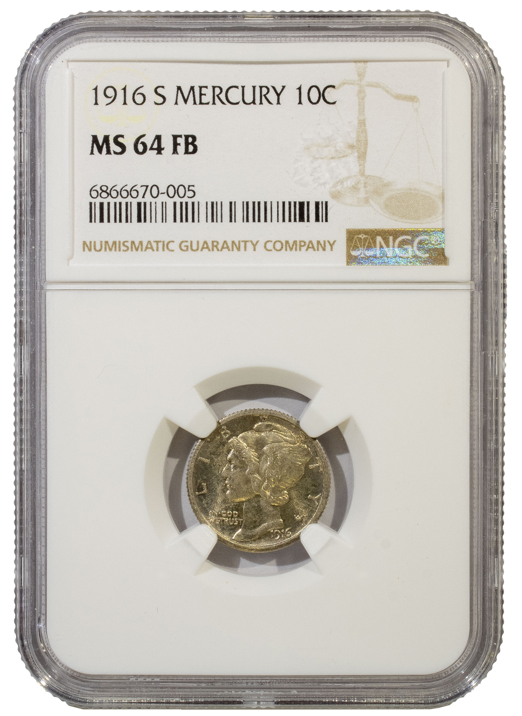 NGC MS-64 FB 1916-S Mercury Dime