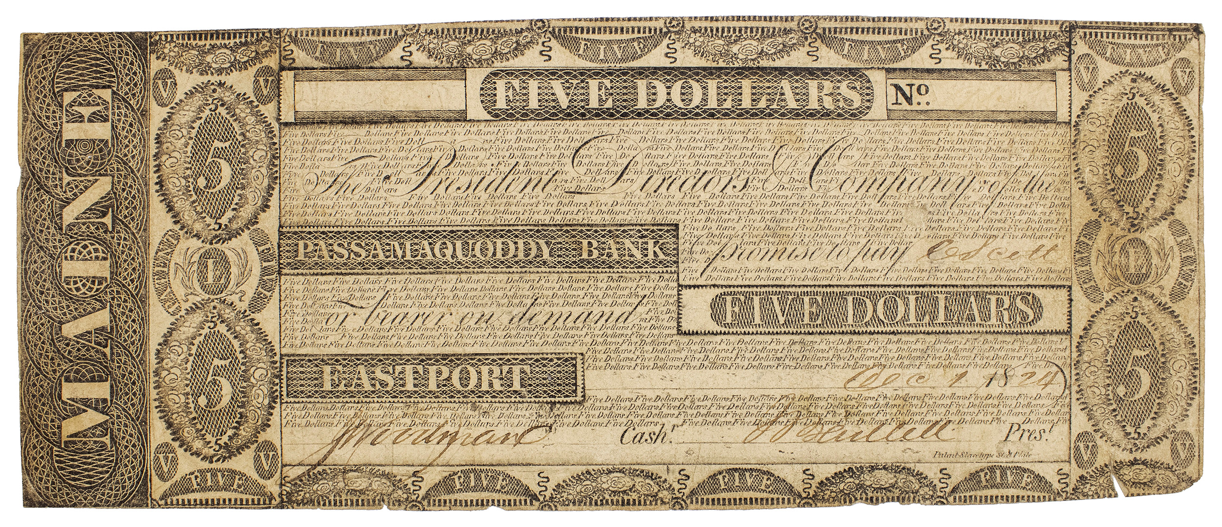Maine. Eastport. VF $5 Note