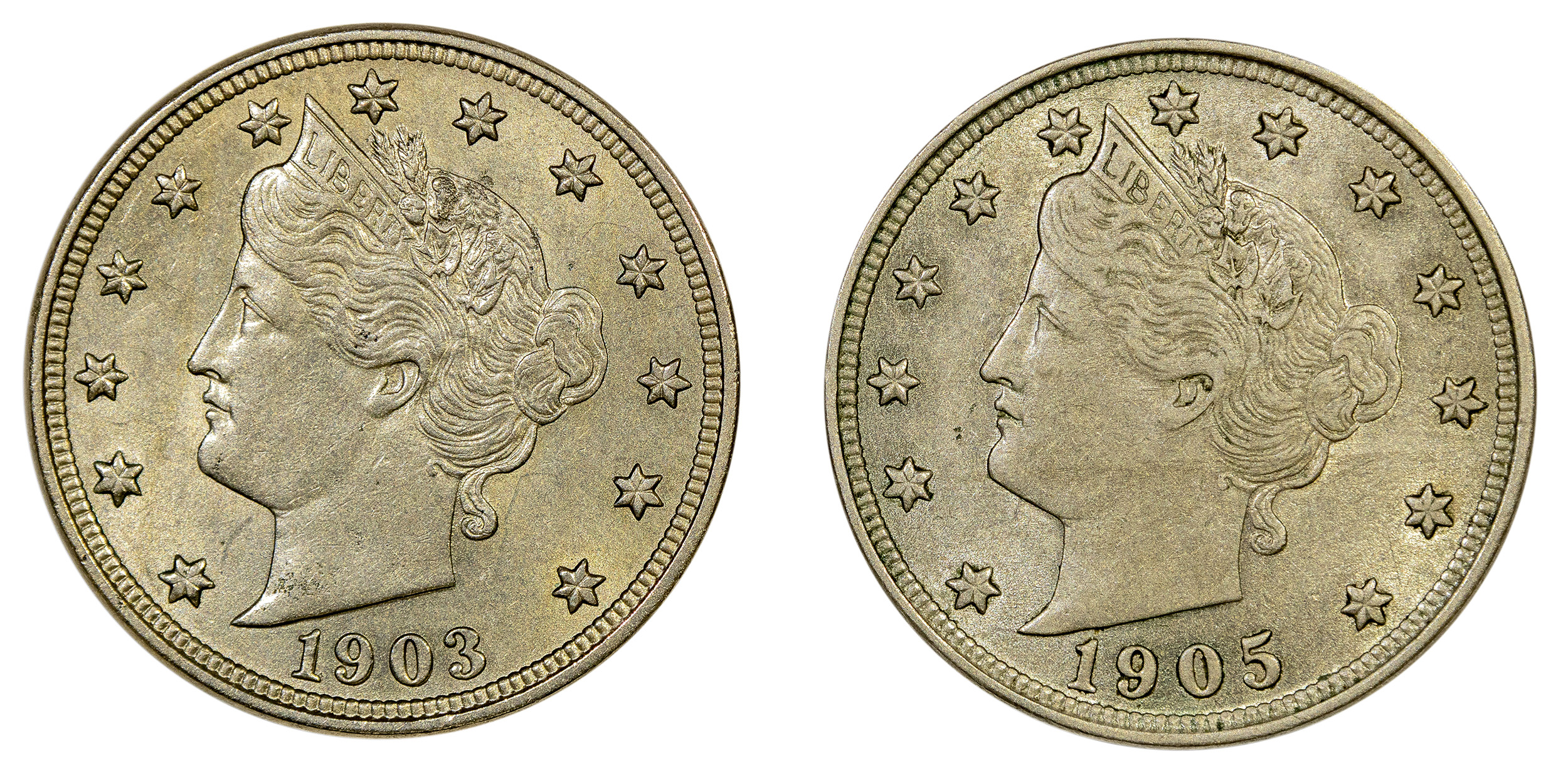 AU Liberty Nickel Pair