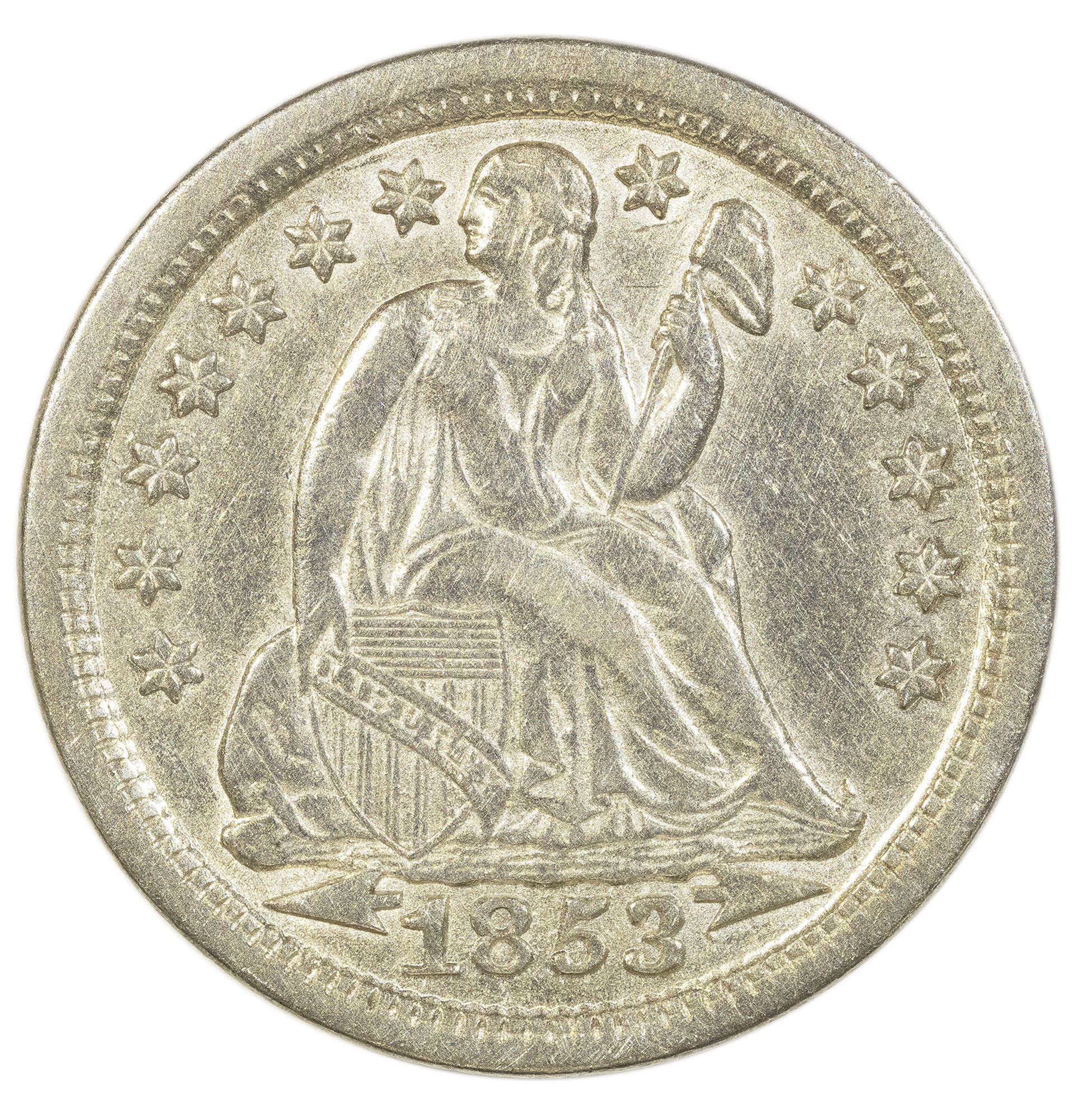 AU-50 Details 1853 Arrows Dime