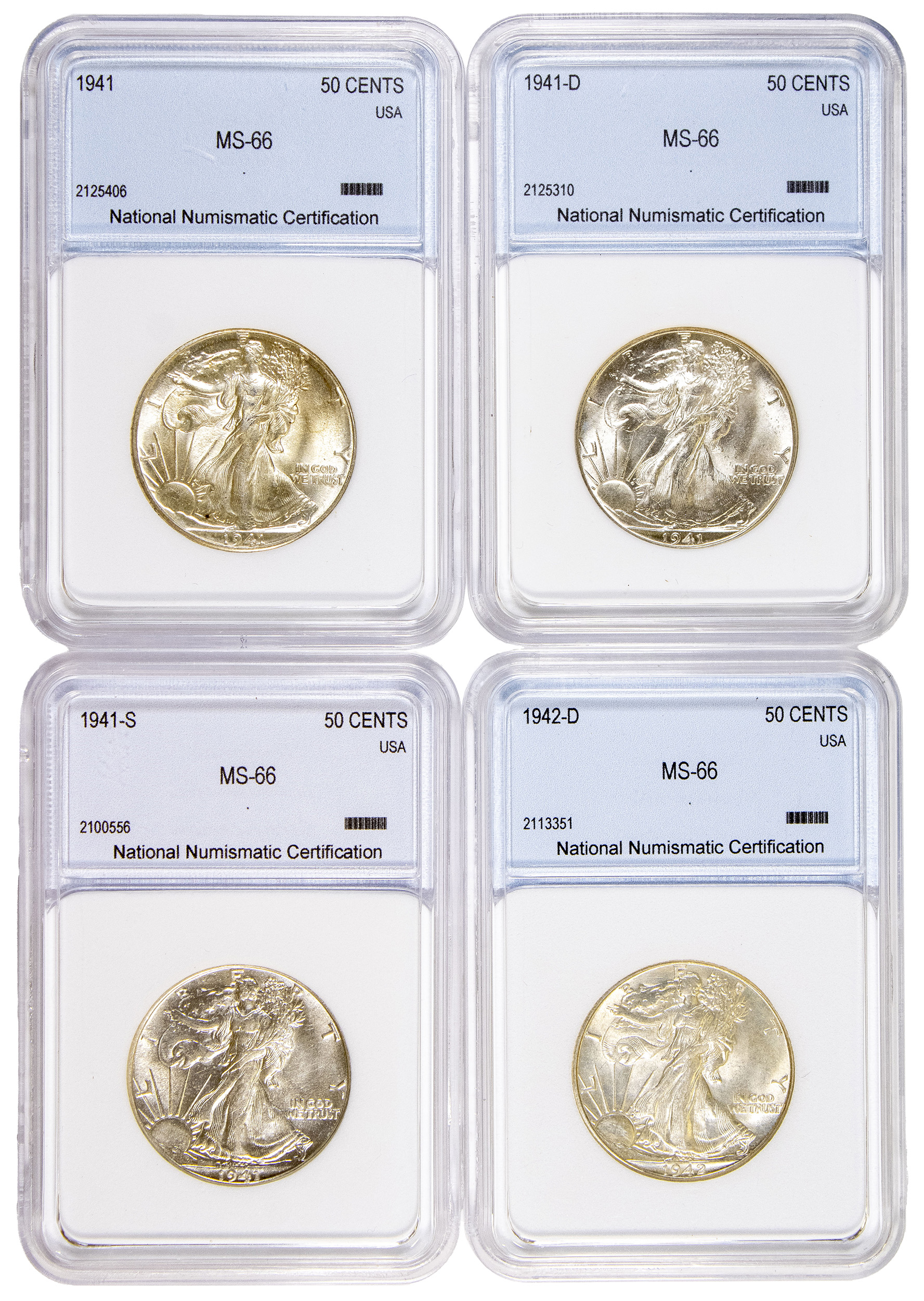 NNC MS-66 Walking Liberty Half Dollar Foursome