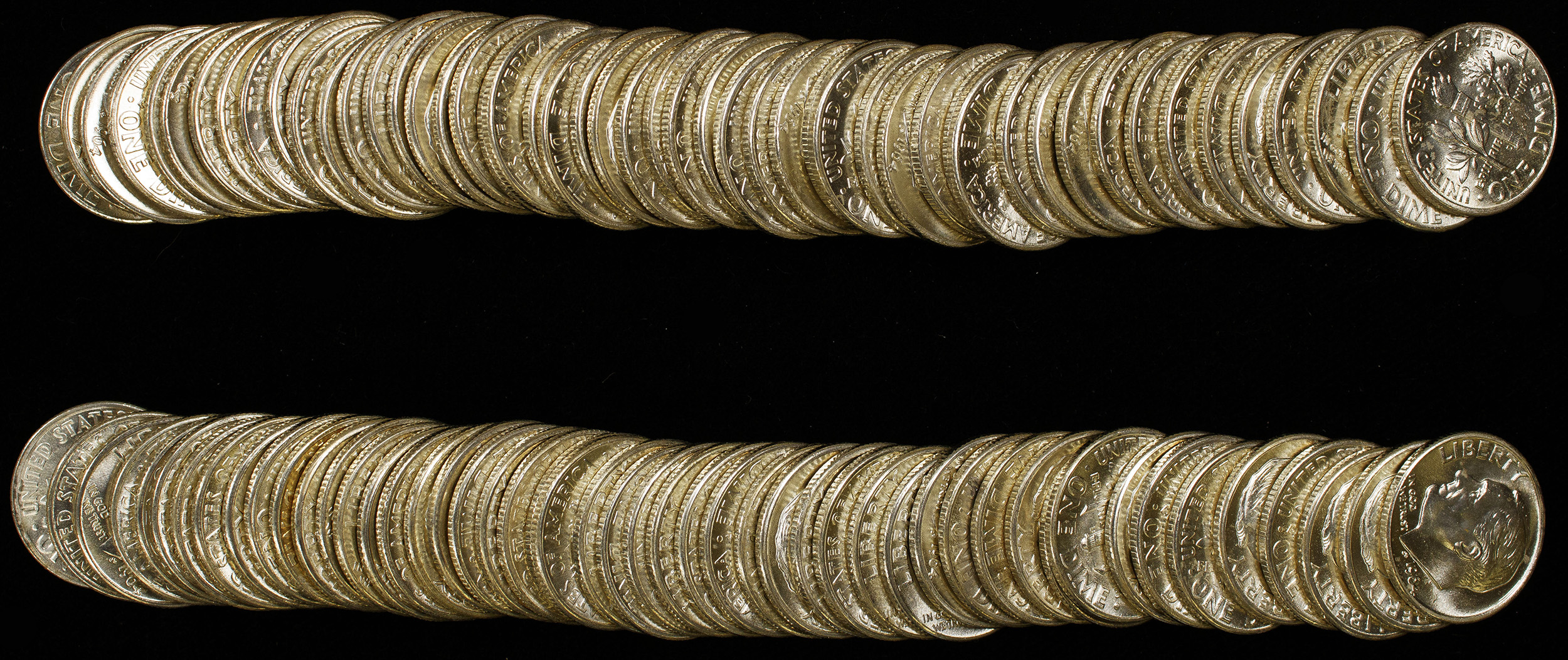 Pair Of BU 1964-D Roosevelt Dime Rolls