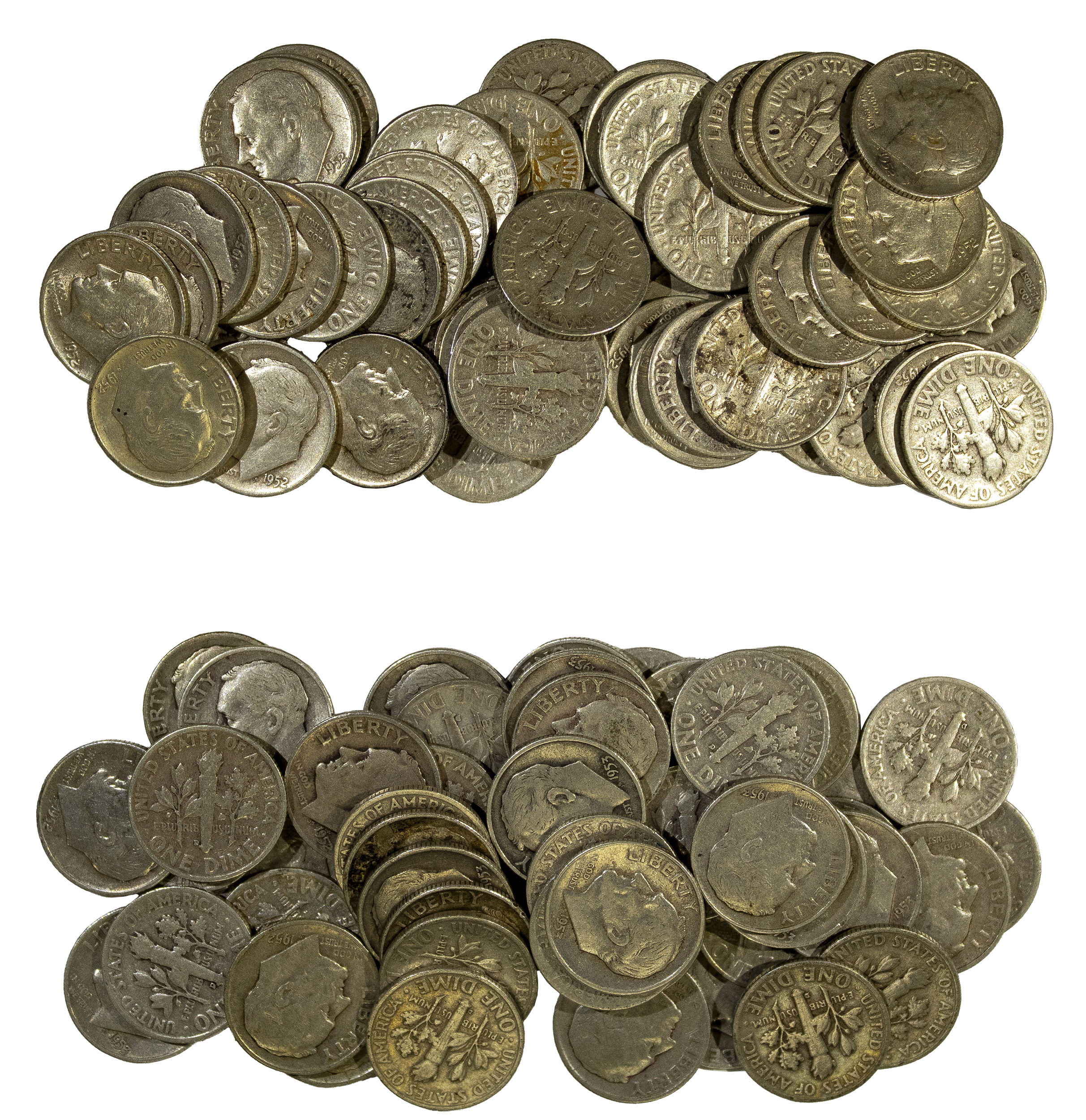 2 Rolls of Circulated Roosevelt Dimes