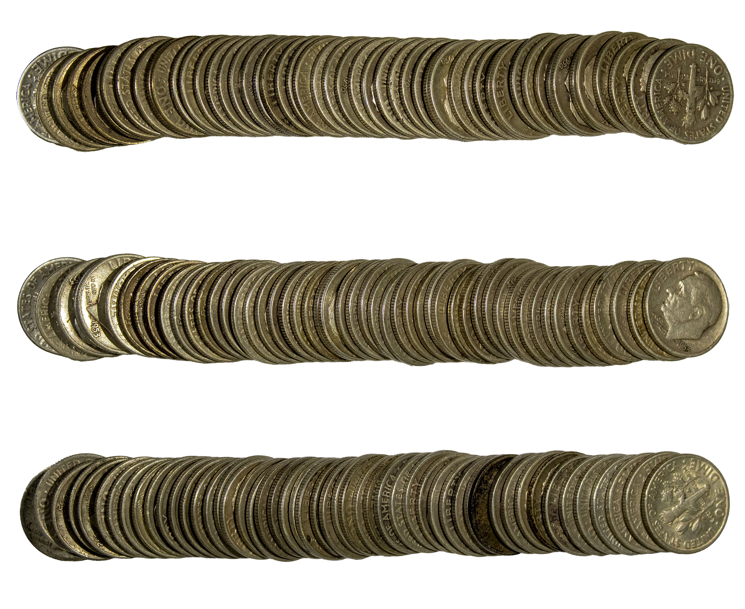 3 Rolls of Circulated Roosevelt Dimes