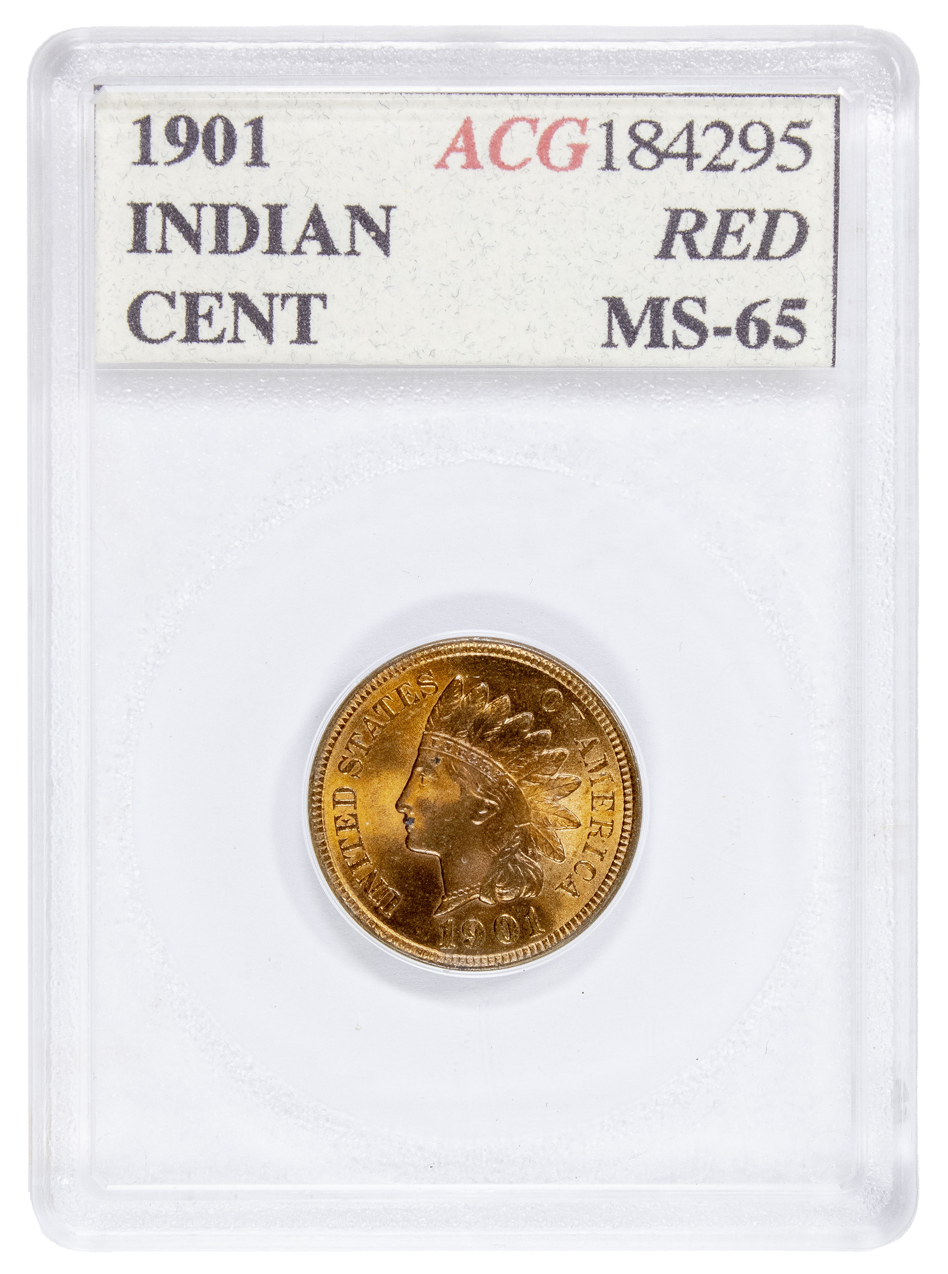 ACG MS-65 Red 1901 Indian Cent